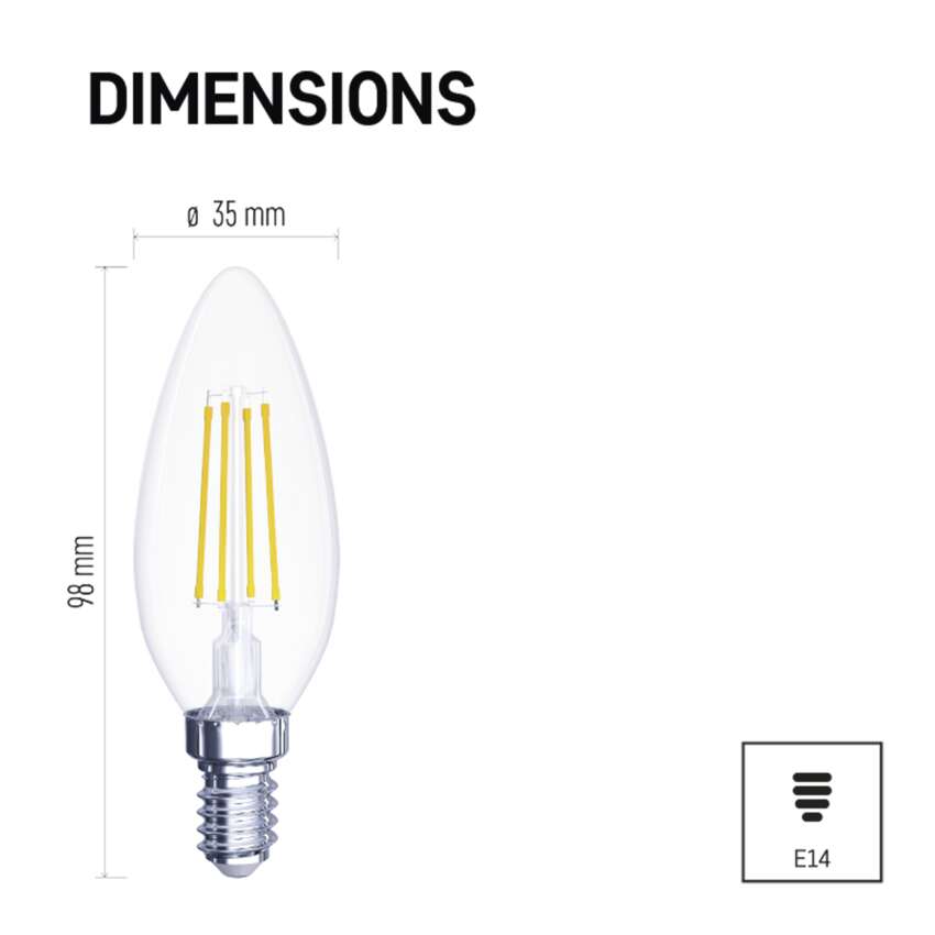 3 + 1 gratis – Żarówka LED Filament świeczka / E14 / 6 W (60 W) / 810 lm / neutralna biel
