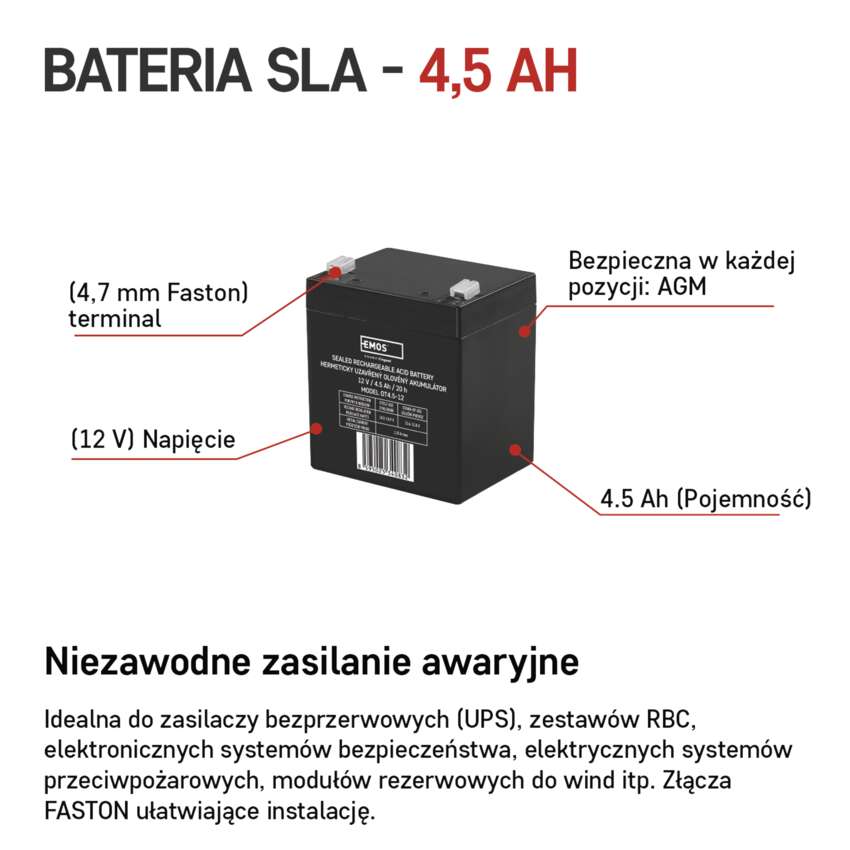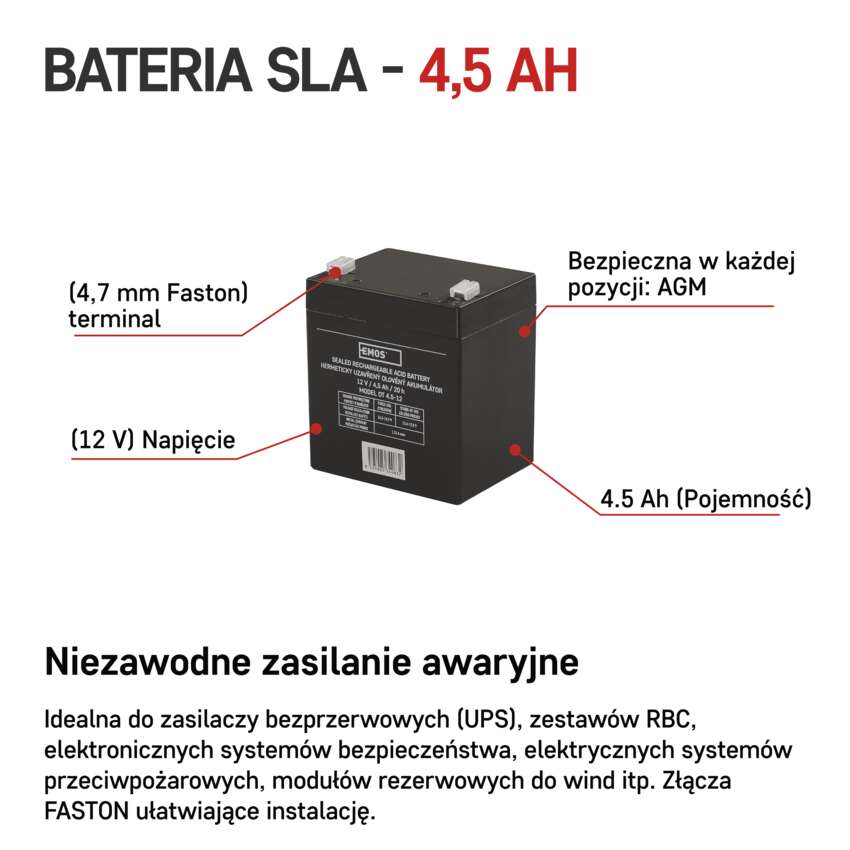 Akumulator AGM 12V 4,5Ah faston 4,7