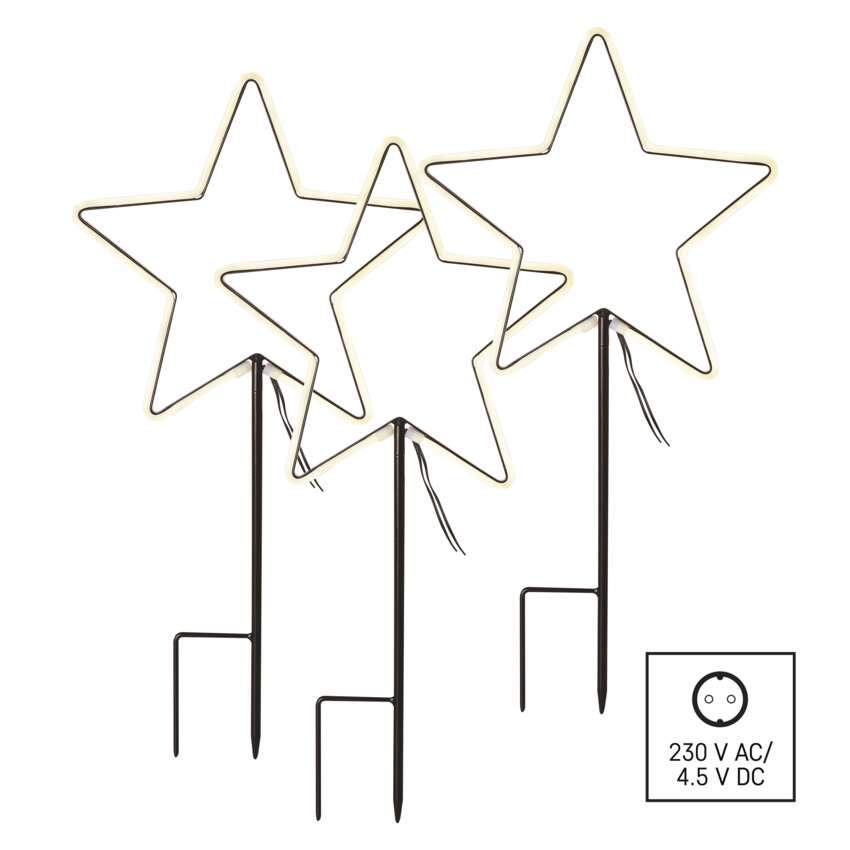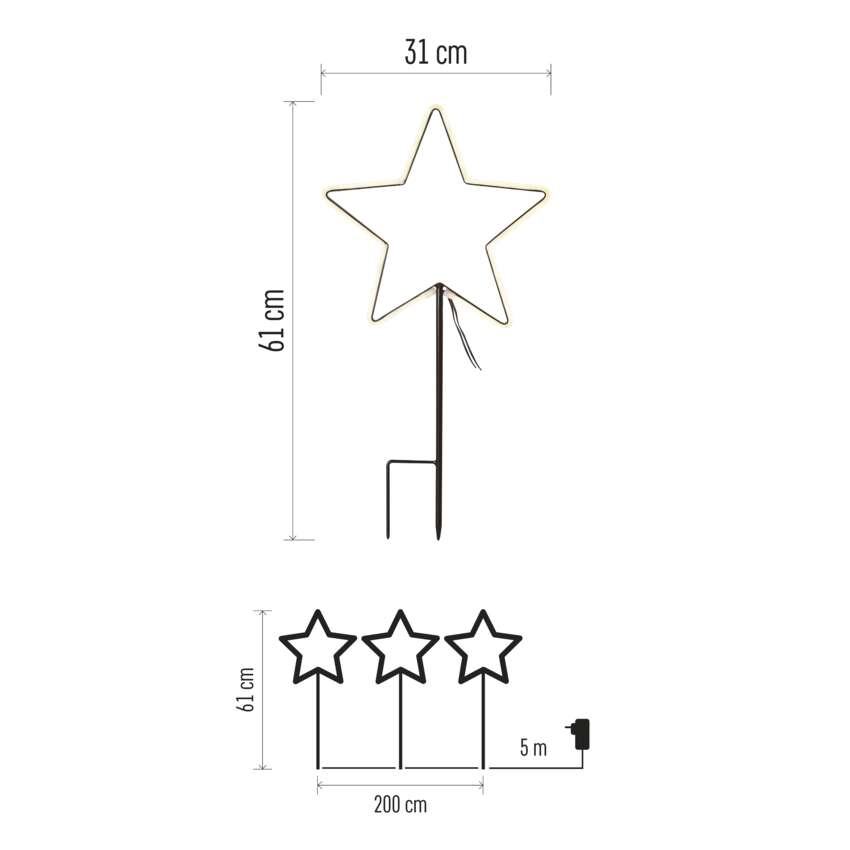 Jak w bardzo prosty sposób stworzyć magiczną atmosferę Świąt Bożego Narodzenia w swoim ogrodzie, ogródku przed domem, rabacie kwiatowej, ozdobnym ogródku skalnym lub podjeździe? Odpowiedzią są gwiazdy pinwheel, które swoim chłodnym białym światłem rozjaśniają inaczej ciemne kąty i wprowadzają do nich odrobinę świątecznej atmosfery. Oprócz tradycyjnego wbicia w ziemię, można tę dekorację ułożyć w doniczkach lub twistach, na przykład na balkonie. Dzięki długiemu 5-metrowemu kablowi zasilającemu podłączenie ich do sieci elektrycznej to pestka.