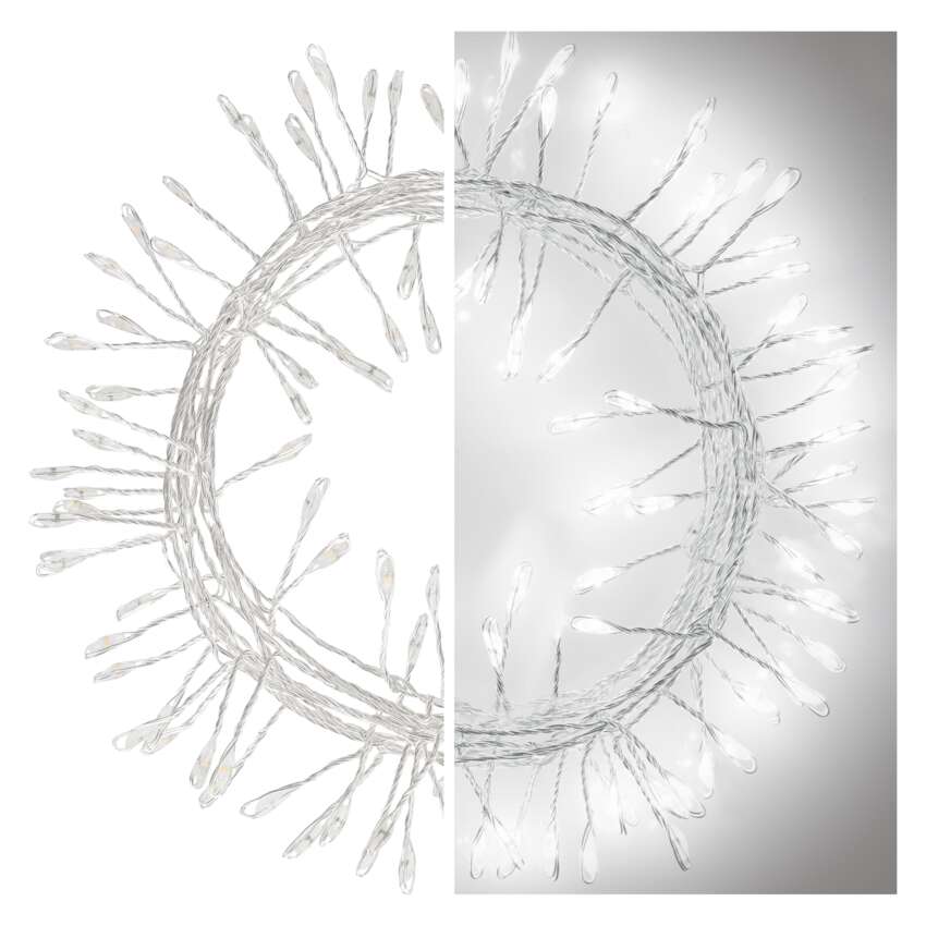 Dekoracje - 100LED small nano łezki, jeżyk, 2,4m 3xAA zimna biel, sreb przew, IP20, timer