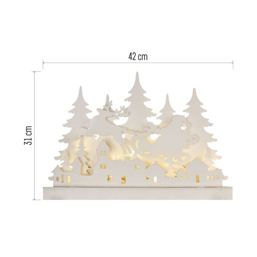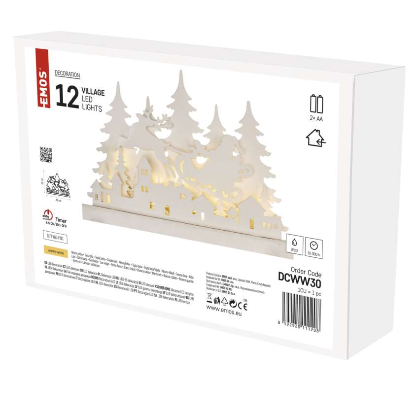 Dekoracje - 12 LED drewniana świąteczna wioska, 42x31 cm, 2x AA, ciepła biel, IP20, timer