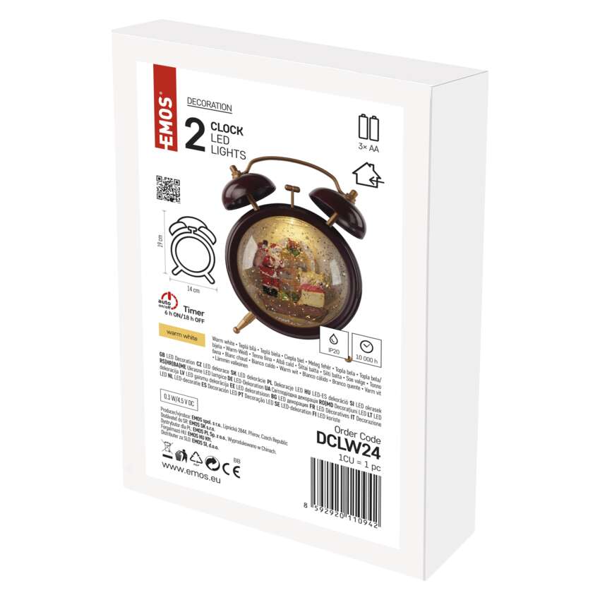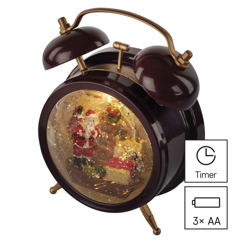 Dekoracje - 2 LED dekoracja świąteczna budzik 19 cm, 3x AA, ciepła biel, IP20, timer