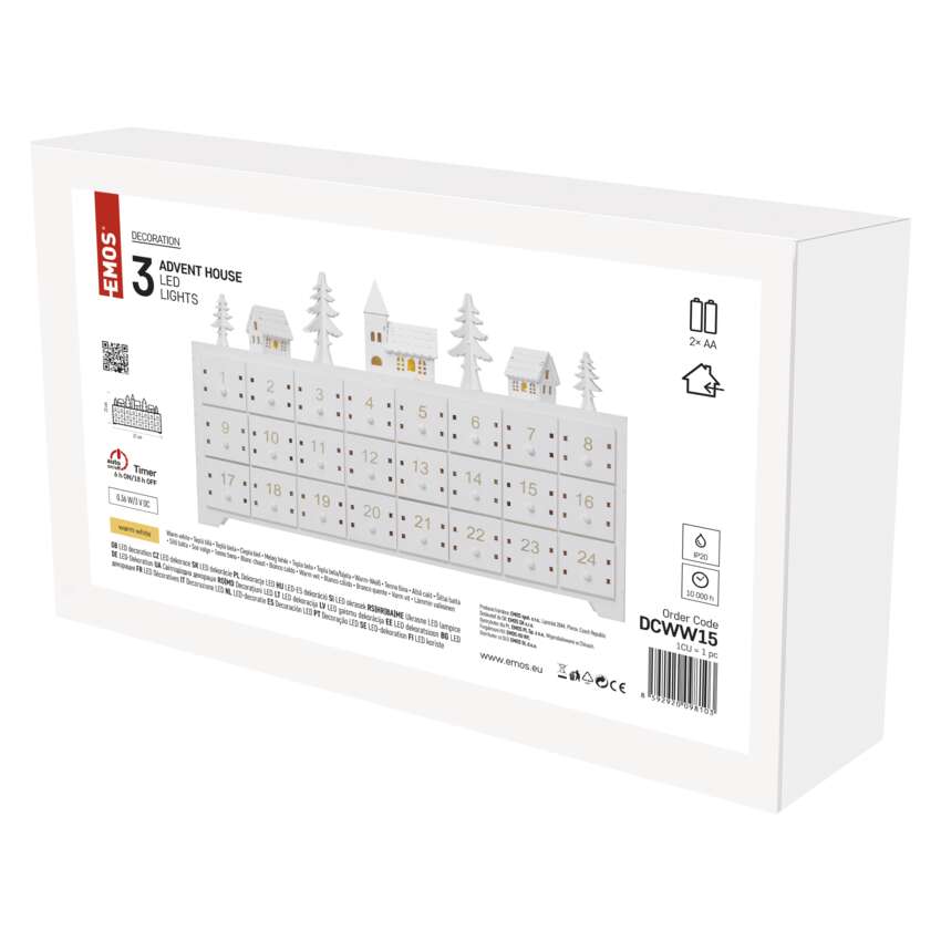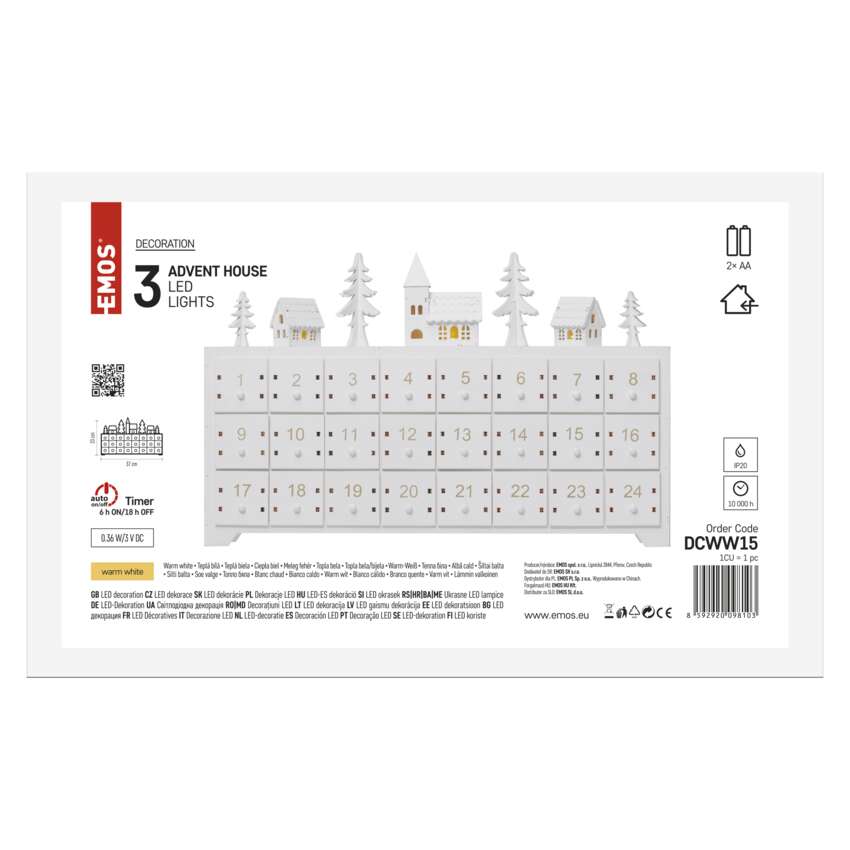 Dekoracje- 3LED kalendarz adwentowy drewniany 37x23 cm, 2x AA ciepła biel, IP20, timer