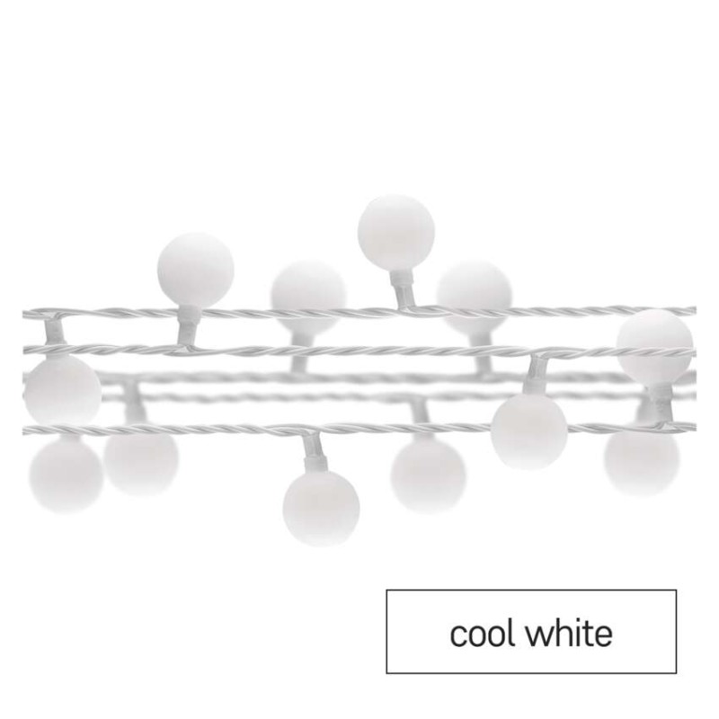 Dekoracje - 40 LED big cherry 4m IP44 zimna biel, biały przewód, IP44, timer