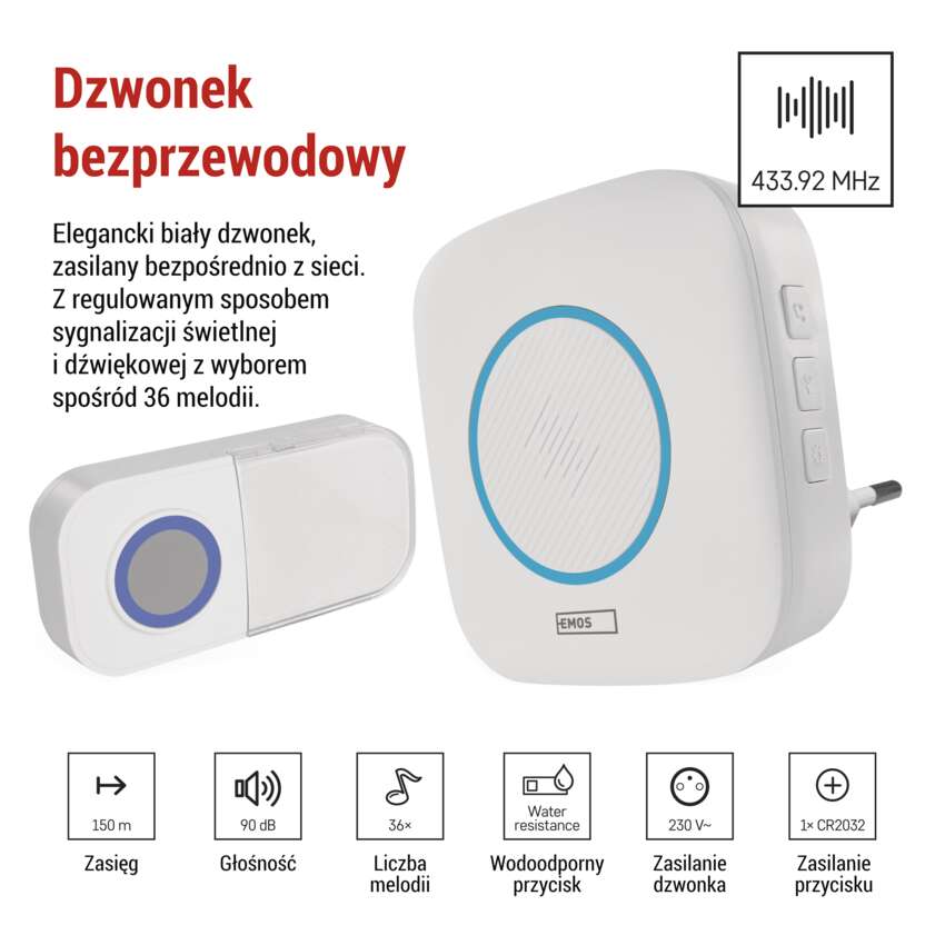 Dzwonek P5737 to nowoczesny dzwonek sieciowy, który wystarczy podłączyć do gniazdka – bez konieczności stosowania baterii i skomplikowanej instalacji. Jest idealny do gospodarstw domowych, w których chcesz mieć pewność nieprzerwanej pracy bez konieczności wymiany zasilania. Stylowe wykonanie uzupełnia dyskretny design, który pasuje do nowoczesnych wnętrz.