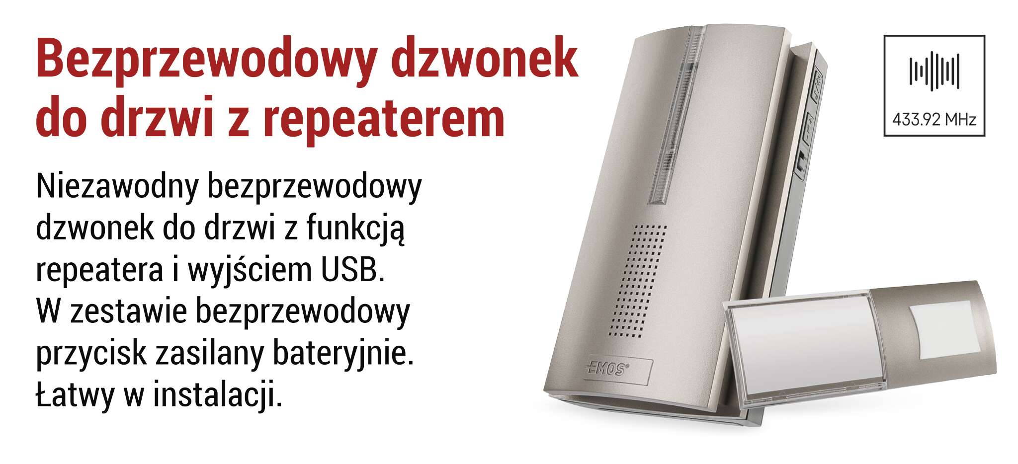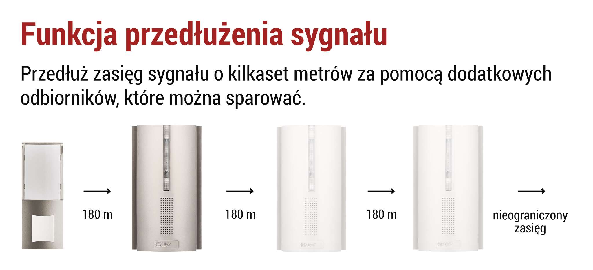 Bezprzewodowy dzwonek do drzwi z dodatkowym zasięgiem i funkcją repeatera
