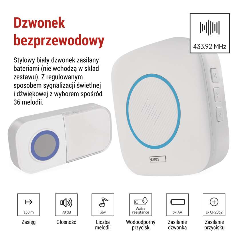 Dzwonek bezprzewodowy DC P5736, 3× AA