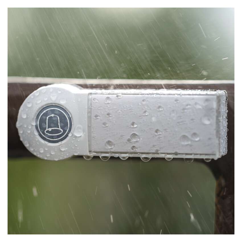 Dzwonek wyposażony jest w wodoodporny przycisk bezprzewodowy, który jest gotowy do używania w niekorzystnych warunkach zewnętrznych. Dzięki temu nie musisz się martwić o umieszczenie przycisku pod okapem. A to nie wszystko. Nie trzeba się martwić, jak doprowadzisz przewody do przycisku. Przycisk zasilany jest jedną baterią CR2032 3V.