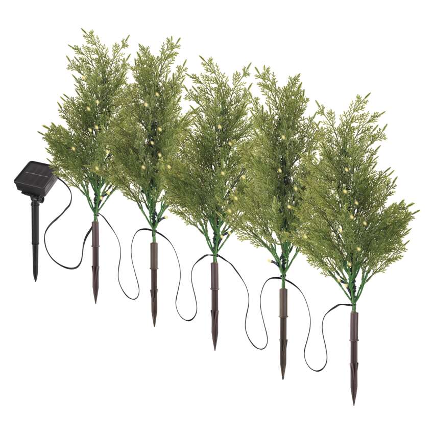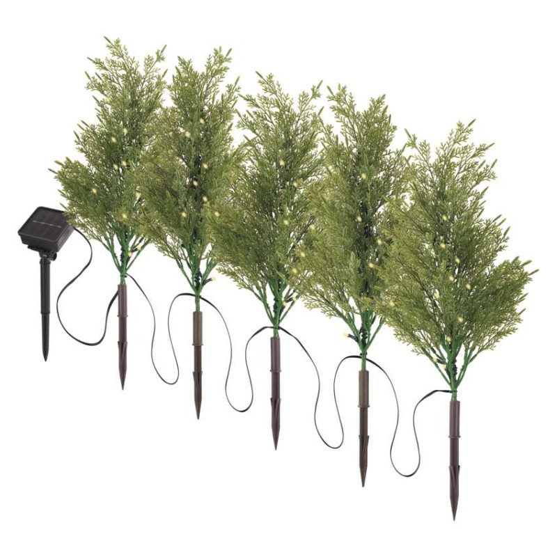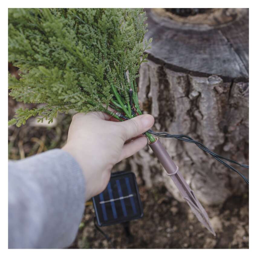 Jeśli szukasz kompromisu między żywymi gałązkami świerkowymi a prostym oświetleniem podczas dekorowania na Boże Narodzenie, to nasze gałązki LED są idealnym rozwiązaniem. Dzięki możliwości wbijania można je łatwo wykorzystać do dekoracji ogrodu, balkonu lub skrzynek na kwiaty w oknie. W zestawie znajduje się łącznie 5 gałązek z diodami LED, które mają ciepłe, białe światło. Pozwala to wyczarować delikatne i eleganckie oświetlenie w przestrzeni. Dekoracja nadaje się do użytku na zewnątrz i otrzymasz ją z jedną baterią NiMH AA w opakowaniu.