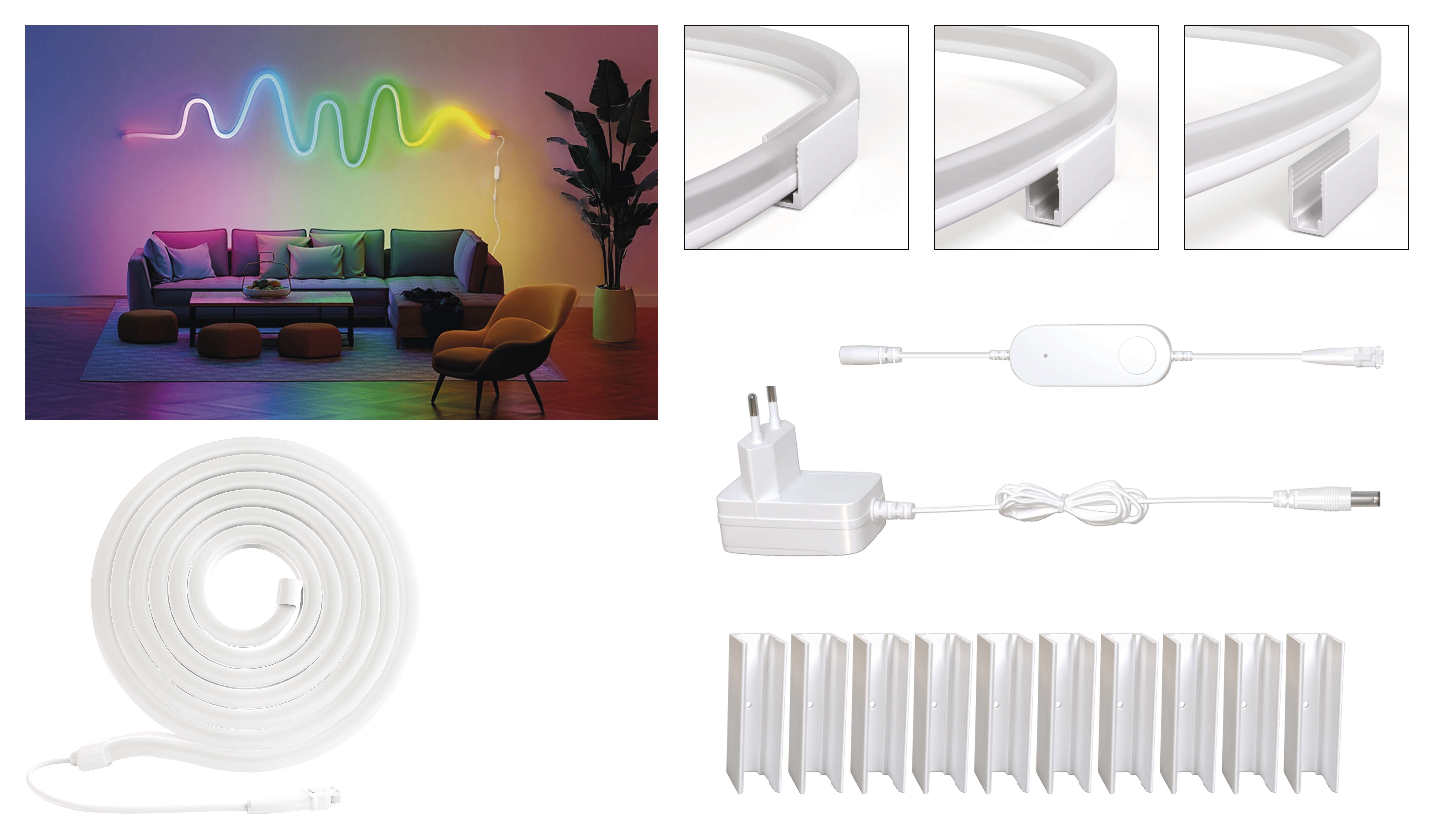 GoSmart Elastyczna taśma LED NEON biała, 5 m, 33 W, RGBIC ściemnialna, WiFi