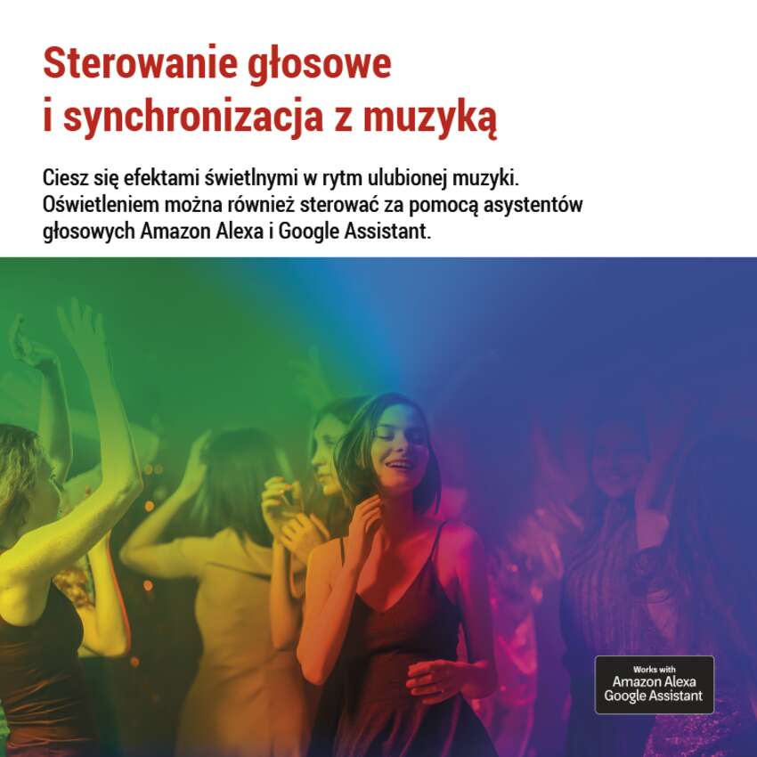 Lampą można sterować nie tylko za pomocą aplikacji mobilnej, ale także za pomocą asystentów głosowych Amazon Alexa i Google Assistant lub sterowania ręcznego bezpośrednio na lampie.