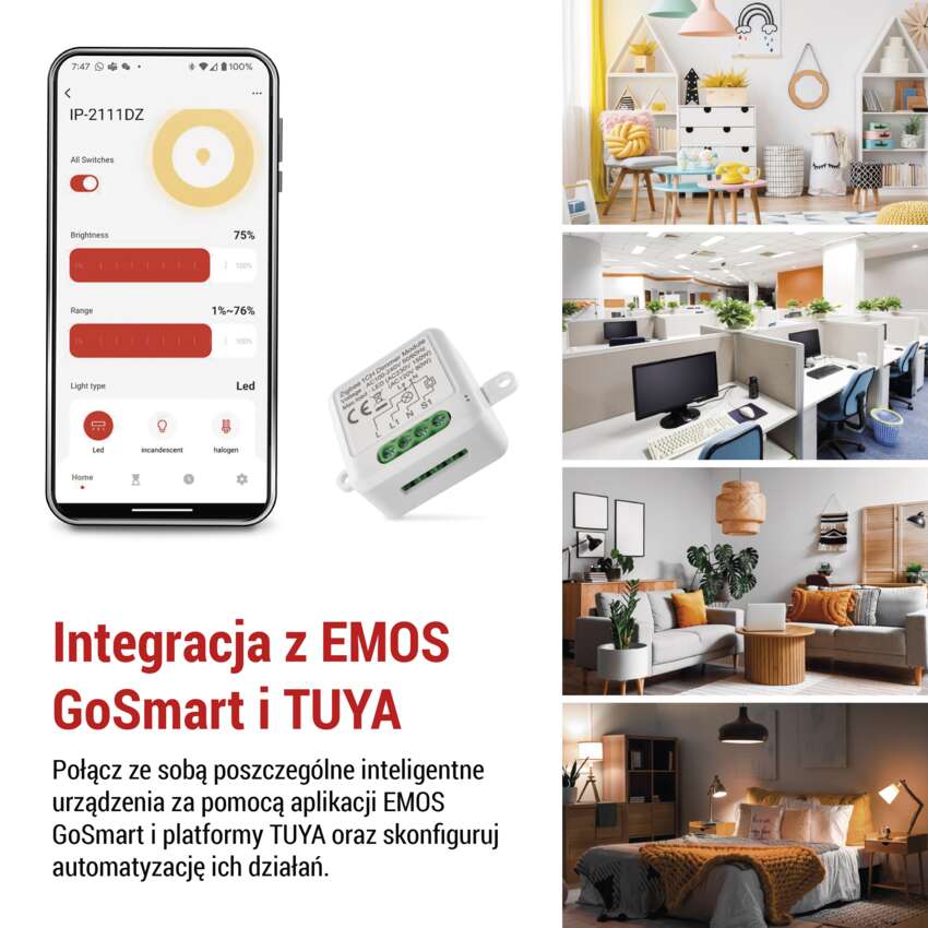 Stwórz swój własny inteligentny dom z inteligentnymi urządzeniami EMOS GoSmart i innymi urządzeniami kompatybilnymi z TUYA. Podłącz poszczególne produkty, ustaw automatyzację ich działań i steruj nimi zdalnie za pomocą w pełni zlokalizowanej i intuicyjnej aplikacji mobilnej.