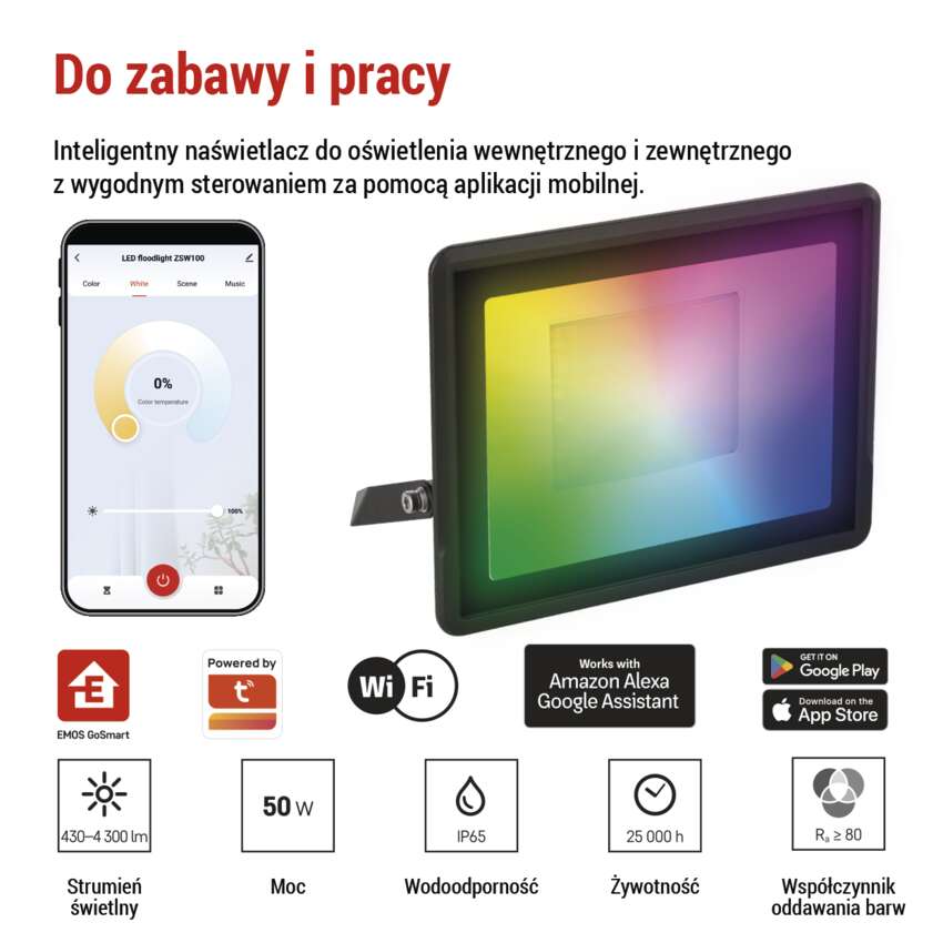GoSmart Naświetlacz LED 50W, 4300 lm, RGB/CCT, IP65, WiFi