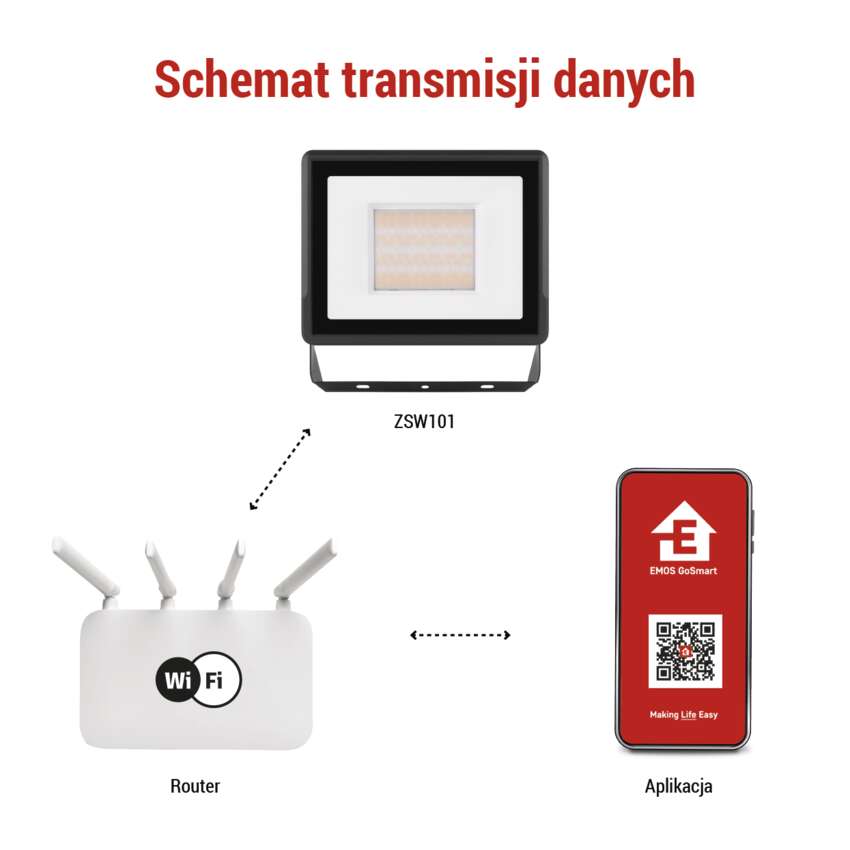 Instalacja Smart Spotlight jest szybka i łatwa! Zamontuj go stabilnie na stabilnej powierzchni, najlepiej na ścianie na wysokości 2,3 do 3 metrów, tak aby światło idealnie pokrywało żądaną przestrzeń. Podłącz kabel zasilający do sieci 220-240 V AC, a w ciągu kilku chwil naświetlacz sparuje się z siecią Wi-Fi za pośrednictwem aplikacji mobilnej EMOS GoSmart. Następnie wystarczy wygodnie sterować oświetleniem z dowolnego miejsca - niezależnie od tego, czy jesteś w domu, czy w podróży.