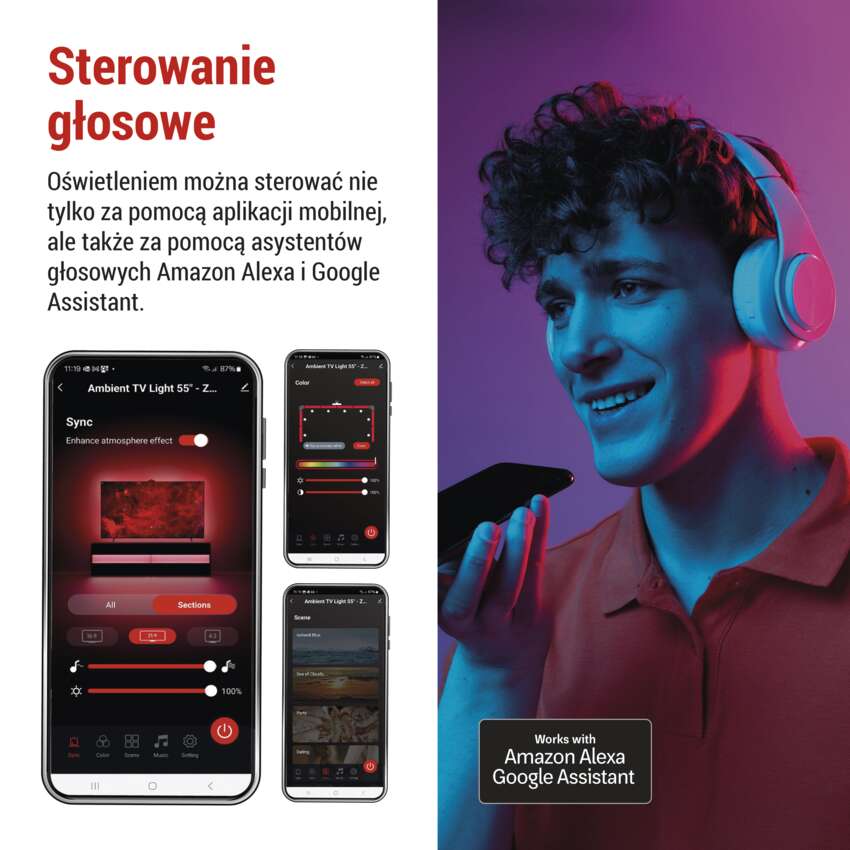 - kompatybilny z asystentami głosowymi Amazon Alexa i Google Assistant