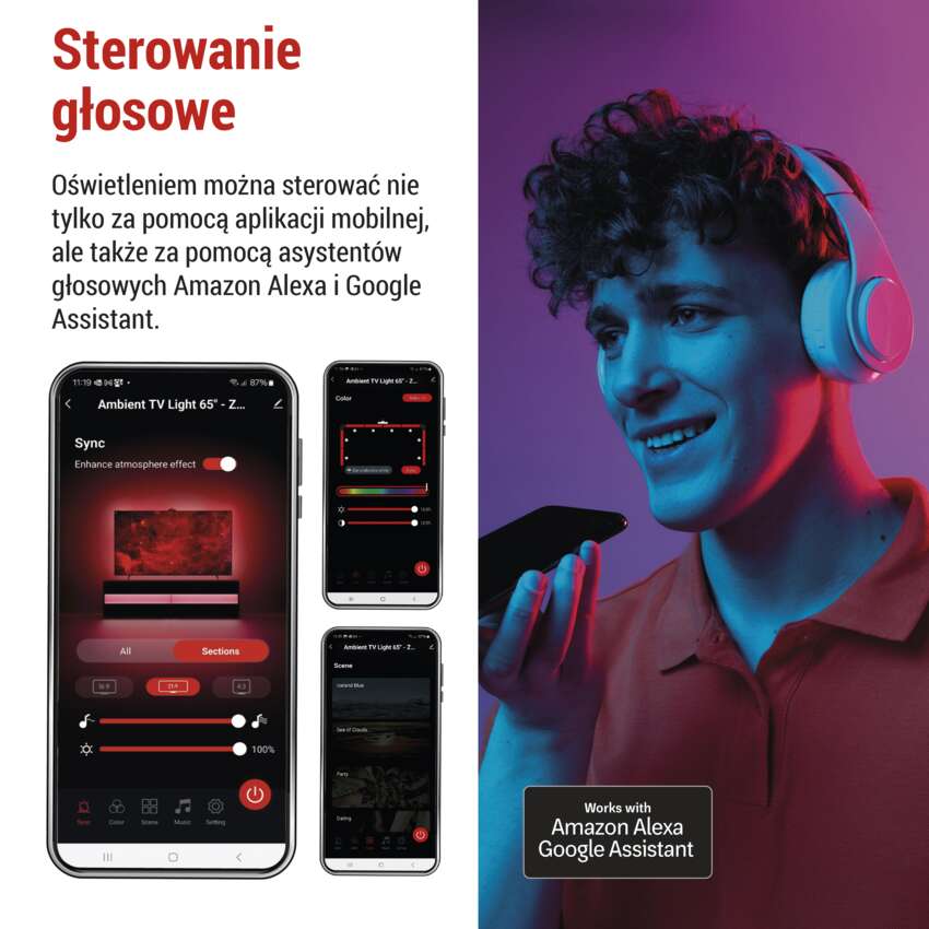 - kompatybilność z asystentami głosowymi Amazon Alexa i Google Assistant