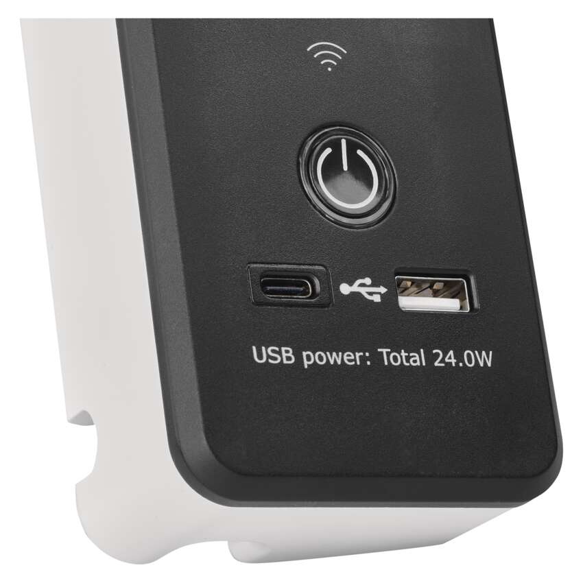 Praktycznym dodatkiem są 2 porty USB, a konkretnie 1x USB-A i 1x USB-C Qualcomm, które będą ładować podłączone urządzenia nawet wtedy, gdy przedłużacz zostanie wyłączony przyciskiem on/off.