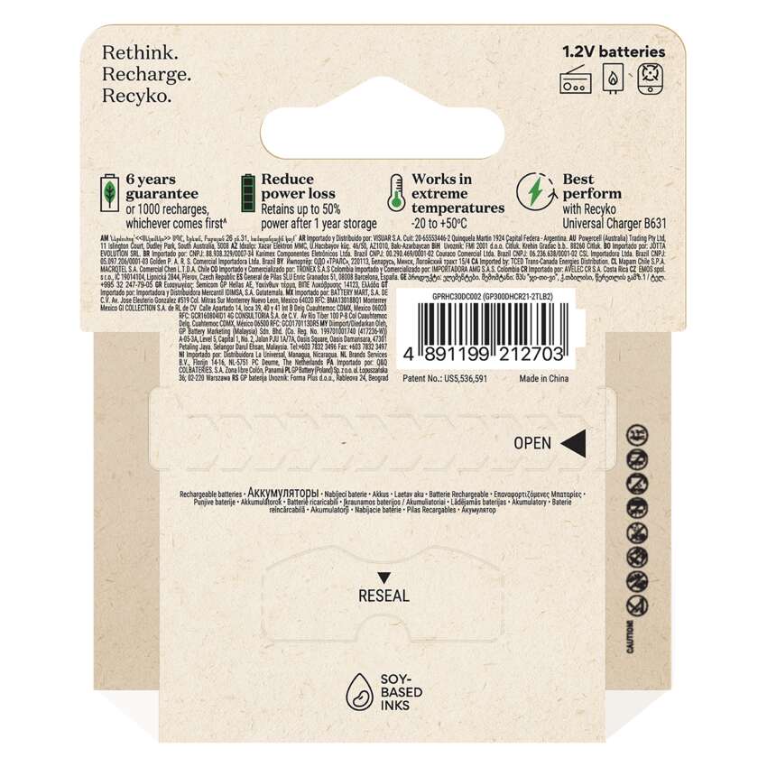 GP nie tylko koncentruje się na produkcji wysokiej klasy produktów, ale aktywnie poszukuje sposobów na zmniejszenie wpływu swoich produktów i ich opakowań na środowisko. Przykładem takich działań jest innowacyjna linia akumulatorów i ładowarek o nazwie Recyko. Produkty te są pakowane w papierowe opakowania, które nie zawierają tworzyw sztucznych. Promuje to wykorzystanie materiałów pochodzących z recyklingu i zmniejsza ilość odpadów. Dzięki tym przyjaznym dla planety opakowaniom Ty również możesz stać się częścią pozytywnych zmian! Przyczyń się do zmniejszenia obciążenia dla środowiska.