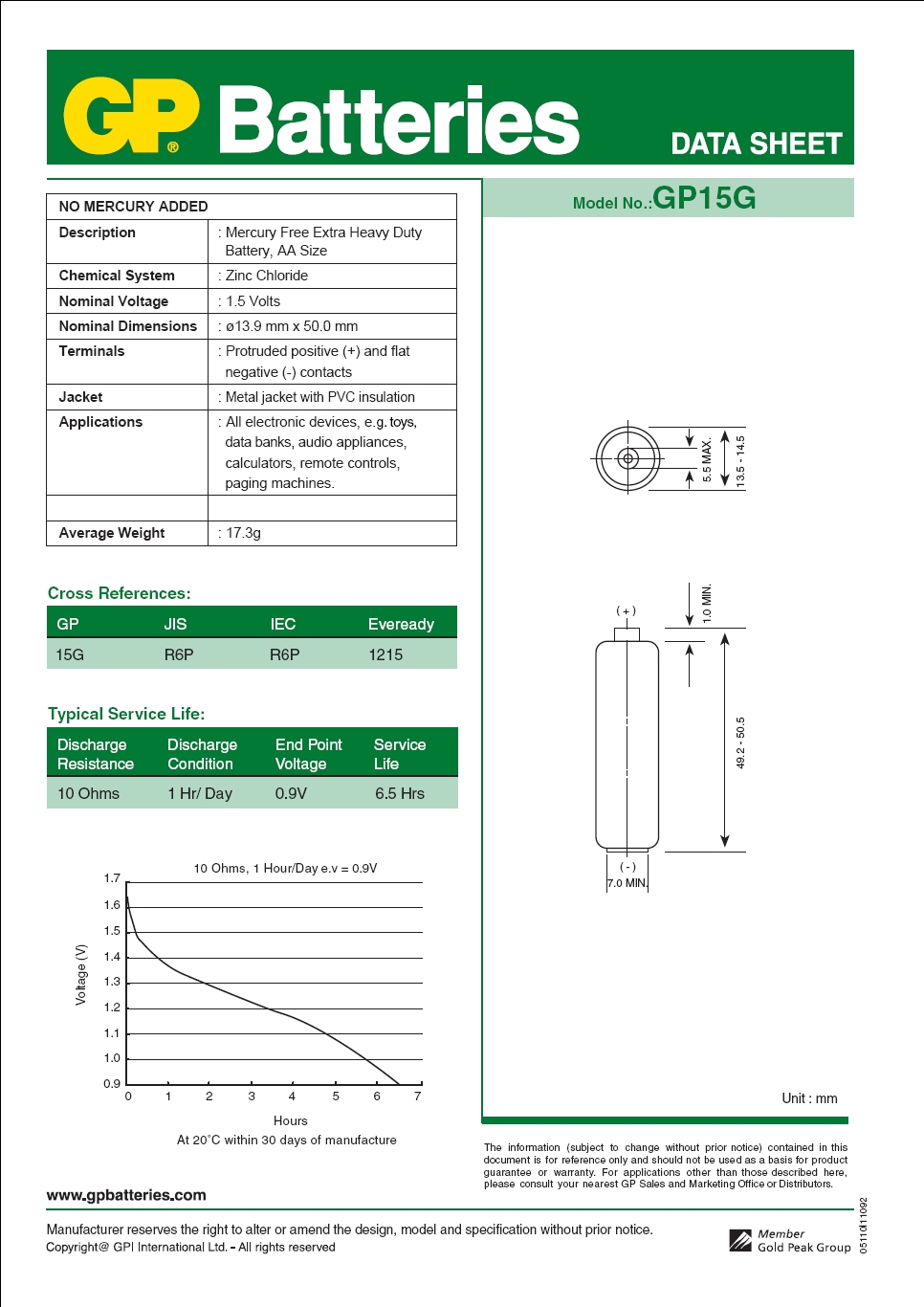 | rodzaj | R6 (paluszek, AA) |