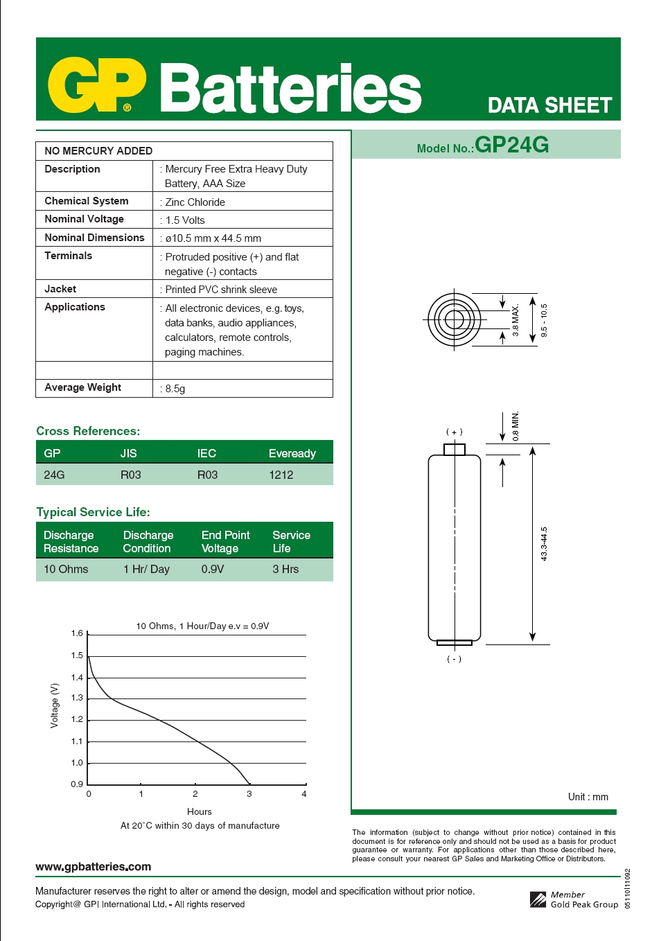 | rodzaj | R03 (mikro paluszek, AAA) |