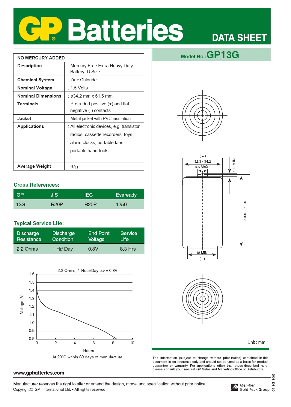 GP Bateria cynkowa GREENCELL D (R20) 2 szt.