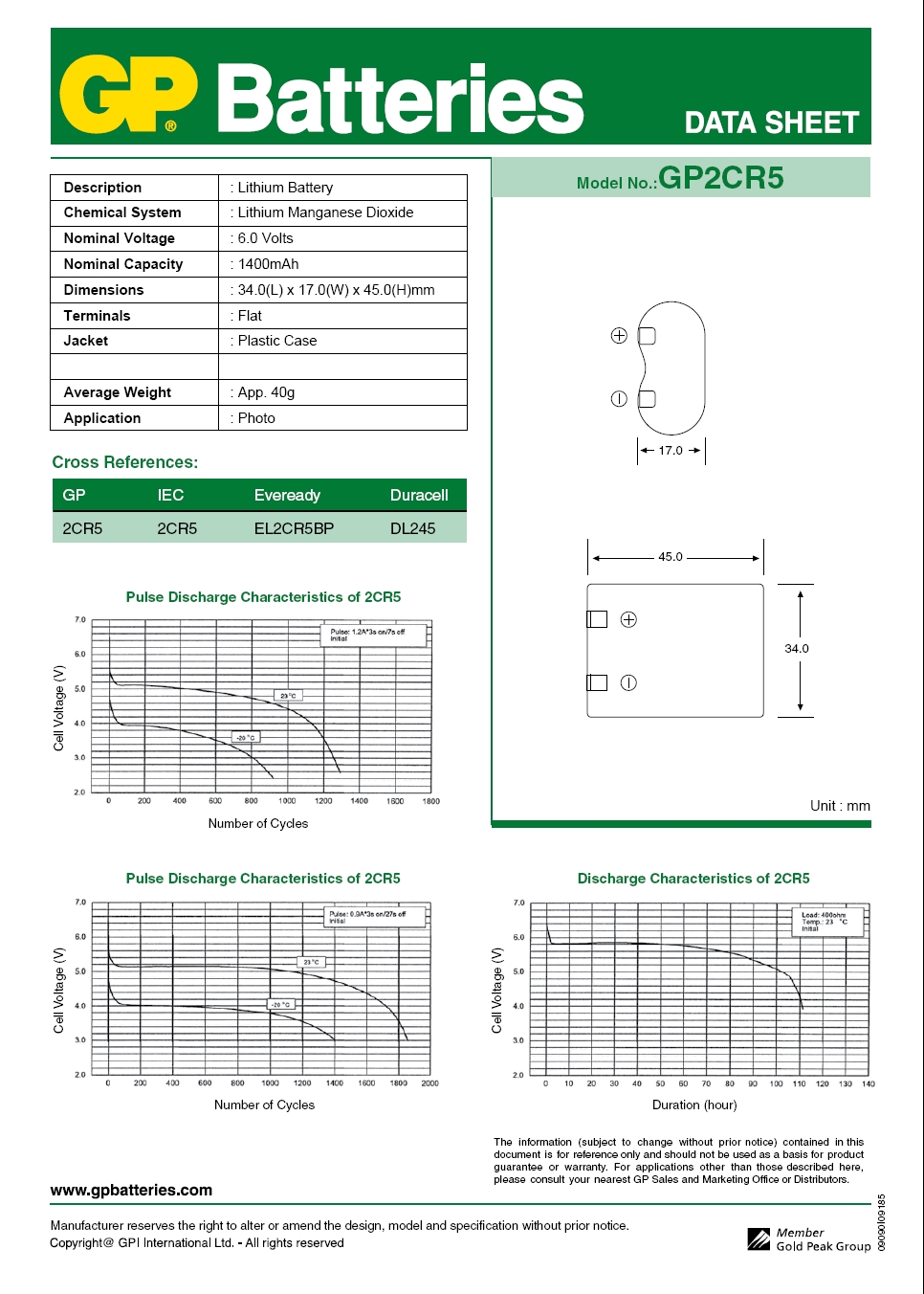 GP Bateria litowa 2CR5, 1 szt.