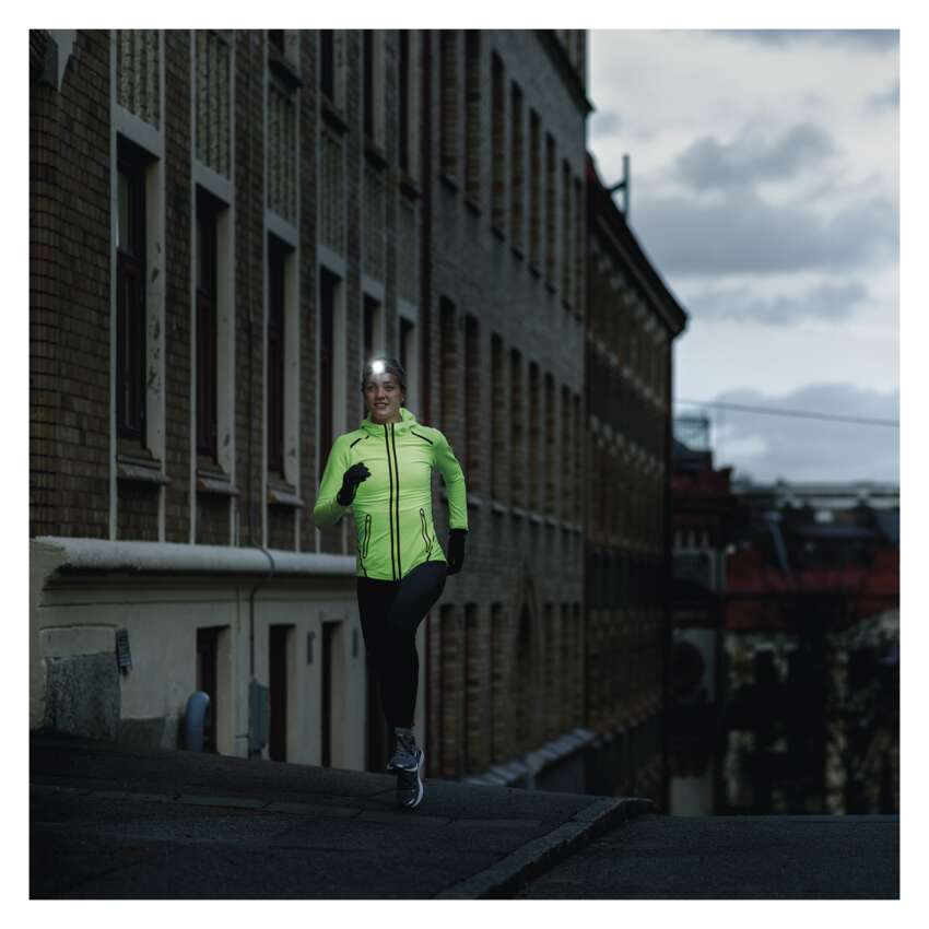 Biegaczom i wędrowcom w szczególności spodoba się możliwość zmiany kąta świecenia w zależności od potrzeb. W pozycji podstawowej stożek świetlny skierowany jest do przodu, aby sięgnąć jak najdalej (do 157 m). Jednak podczas biegania i chodzenia bardziej przydaje się pochylenie do 60°, dzięki czemu nie musisz się martwić o potknięcia.