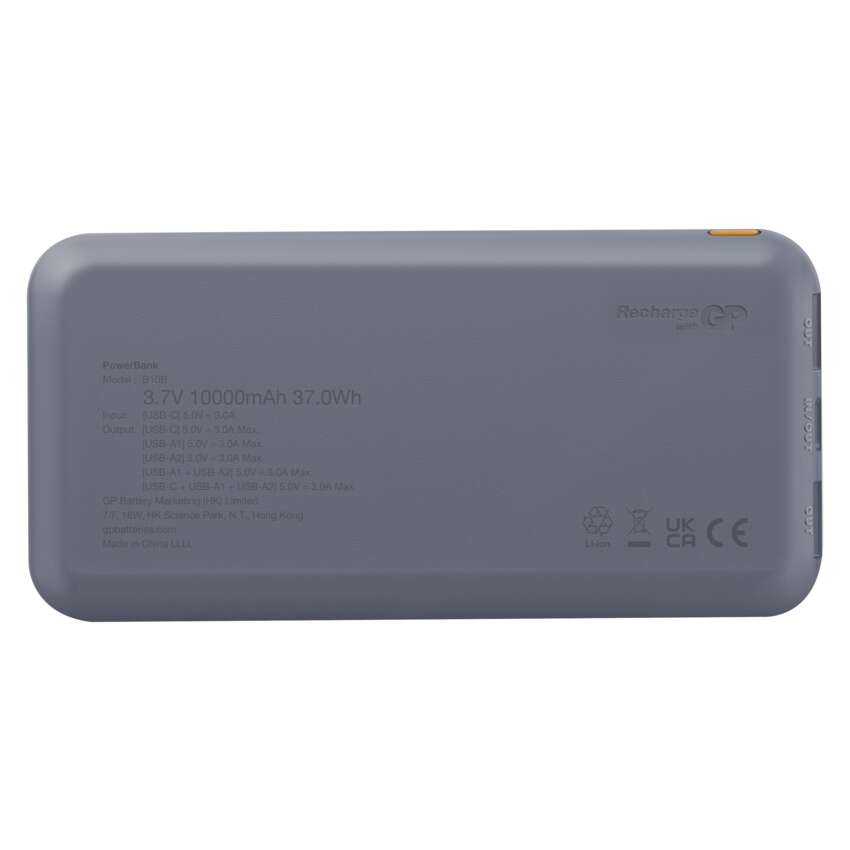 Odkryj powerbank GP, który łączy w sobie wydajność, styl i praktyczność. Dzięki pojemności 10 000 mAh ładuje do trzech urządzeń jednocześnie - takich jak telefon, słuchawki czy smartwatch.