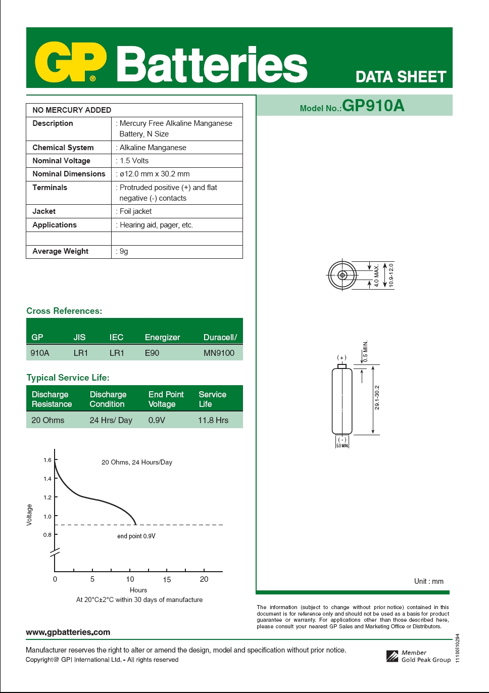| pojemność | 885 mAh (przy obciążeniu 20 kOhm) |