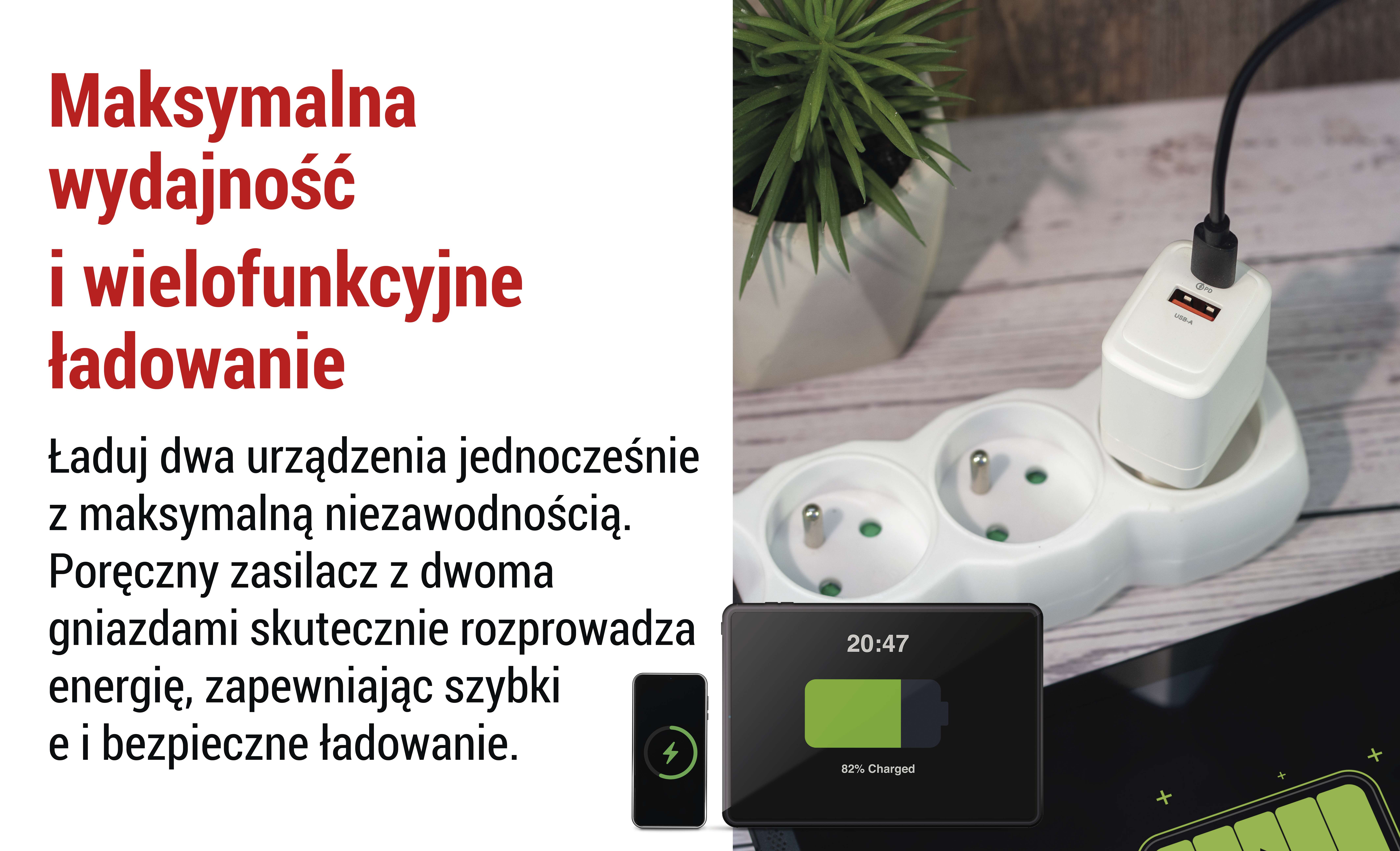 Odkryj najnowszy sposób ładowania dzięki zasilaczowi USB wyposażonemu w najnowocześniejszą technologię GaN (azotek galu). Ten innowacyjny materiał zastępuje standardowe półprzewodniki krzemowe, umożliwiając wyższą wydajność, mniejsze nagrzewanie i bardziej kompaktową konstrukcję. Dzięki temu zasilacz jest mocniejszy, mniejszy i bardziej energooszczędny niż standardowe ładowarki. Ponadto jest kompatybilny z prawie każdym gniazdkiem elektrycznym w Europie, co czyni go idealnym towarzyszem podróży.