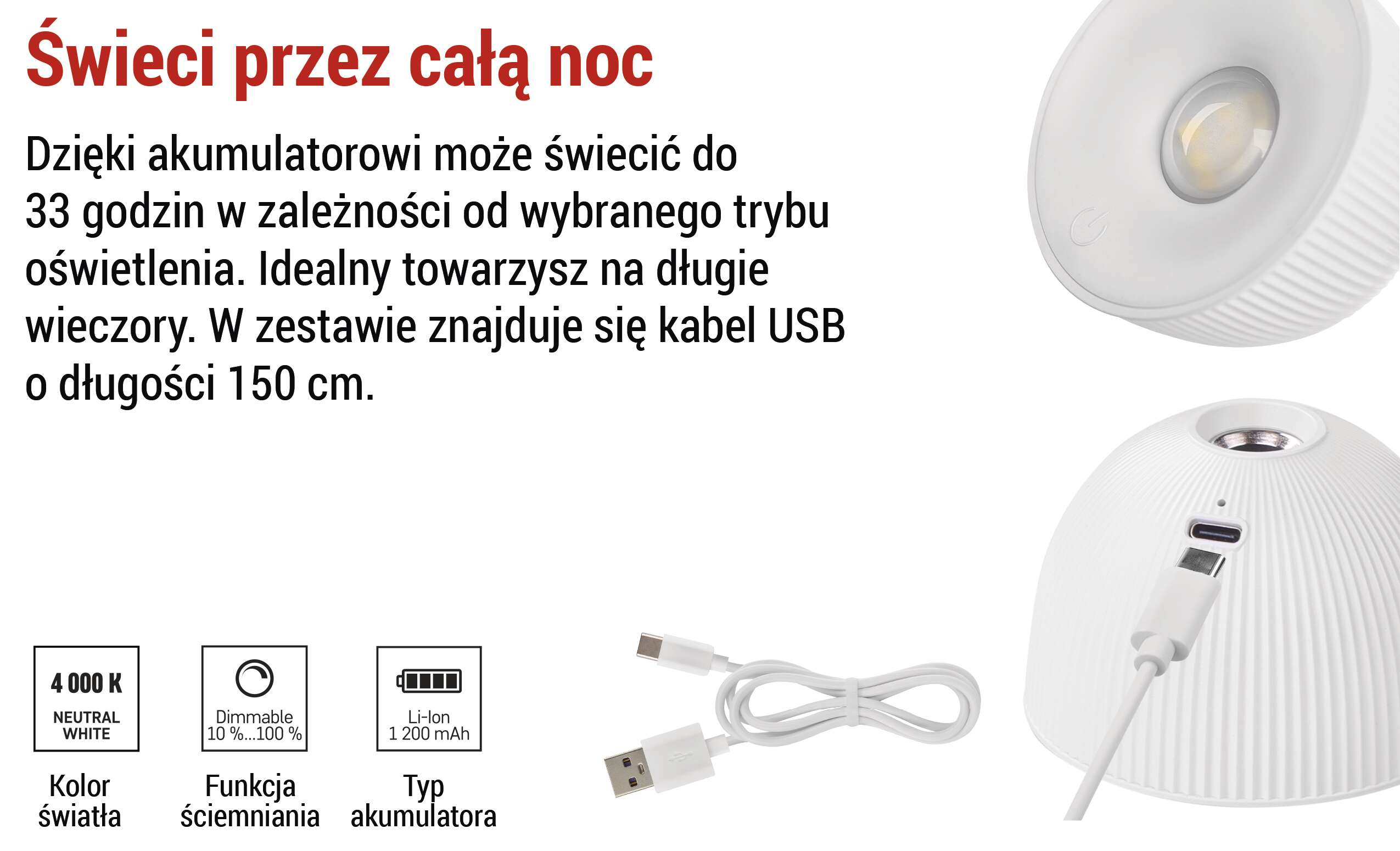 Lampa biurkowa LED SOPHIE, ładowalna, biała