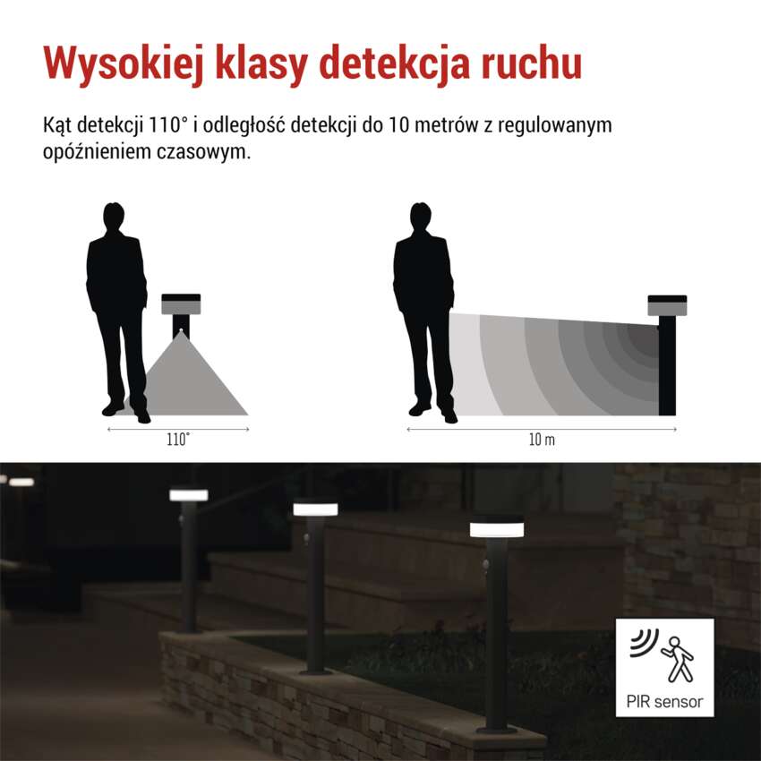 Seria TERION to idealny wybór dla tych, którzy szukają połączenia atrakcyjnego wyglądu i niezawodnej wydajności. Jej nowoczesny design nada każdej przestrzeni zewnętrznej wyrazistego charakteru. Gama obejmuje jedną lampę ścienną i dwa supki oświetleniowe, wszystkie ze zintegrowanym czujnikiem PIR. Zapewniają one bezprzewodową pracę bez konieczności podłączania do sieci. Są idealne dla każdego, kto chce mieć pięknie oświetlony ogród z naciskiem na oszczędność i prostotę.