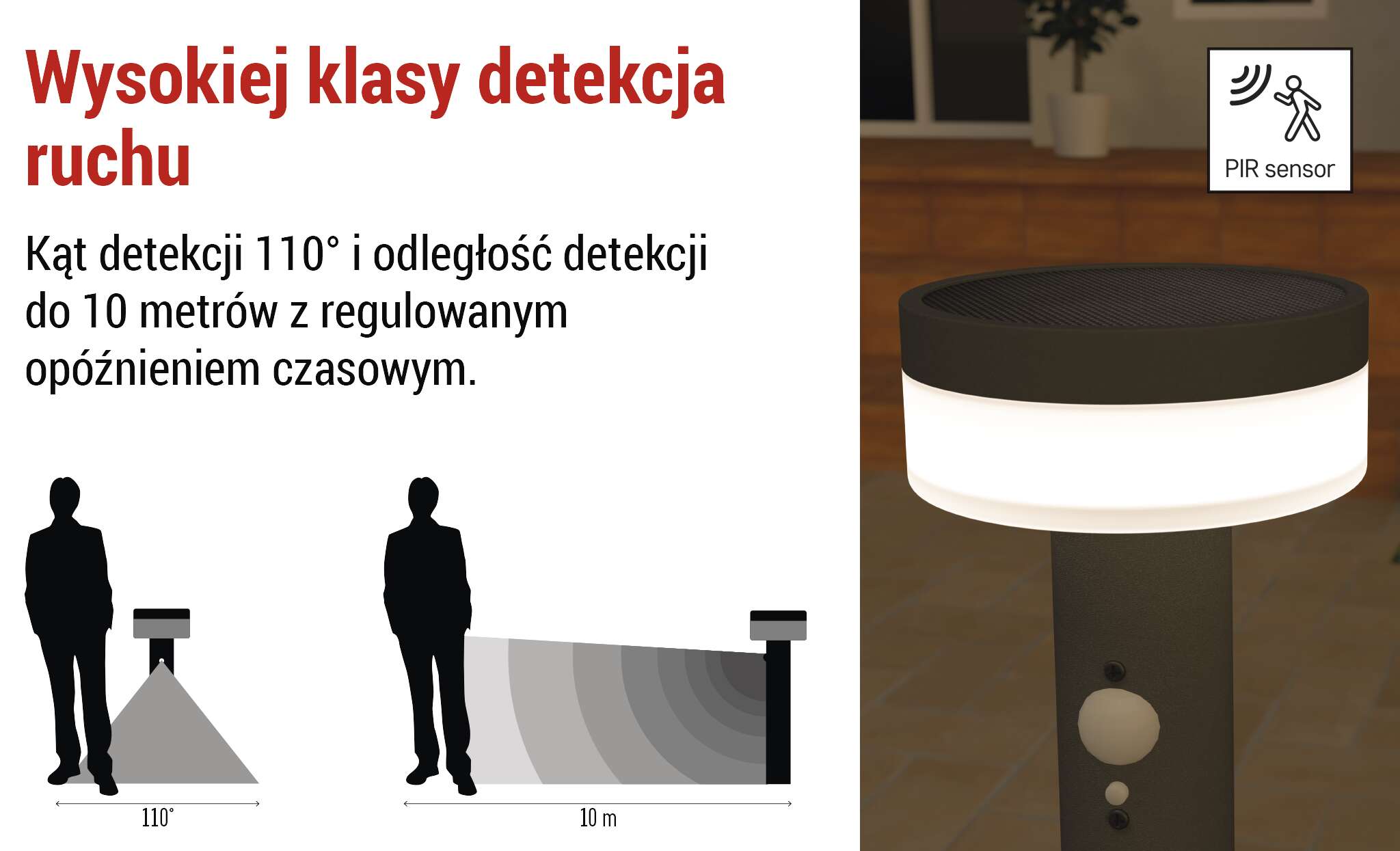 Seria TERION to idealny wybór dla tych, którzy szukają połączenia atrakcyjnego wyglądu i niezawodnej wydajności. Ich nowoczesny design doda wyrazistego charakteru każdej przestrzeni zewnętrznej. W tej serii znajdziesz jedną lampę ścienną i dwa słupki oświetleniowe, wszystkie z wbudowanym czujnikiem PIR. Zapewniają one bezprzewodową pracę bez konieczności podłączania do sieci. Są idealne dla każdego, kto chce mieć pięknie oświetlony ogród z naciskiem na oszczędność i prostotę.