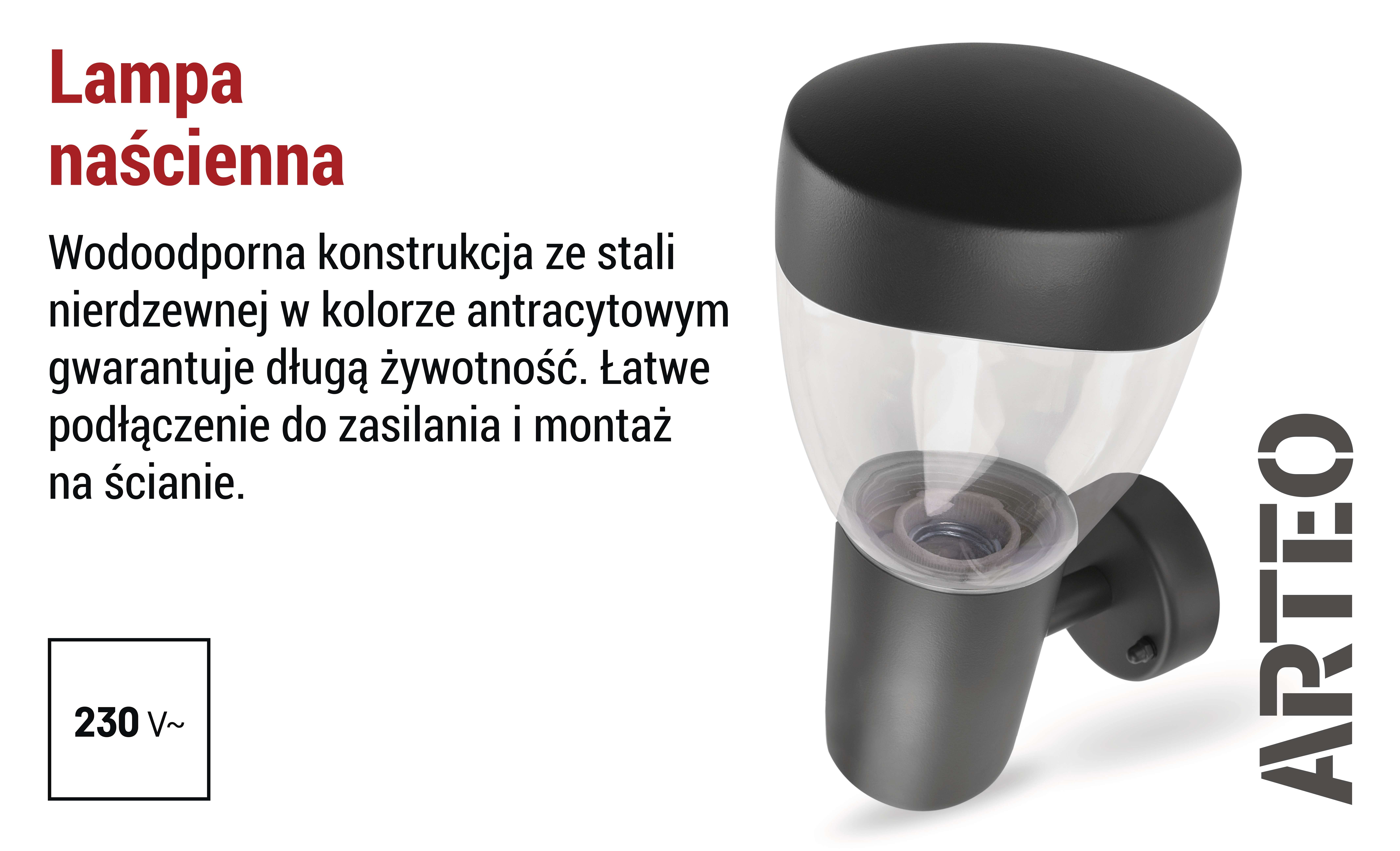 Lampa naścienna Garden ARTEO, na żarówkę E27, max 15W, IP44