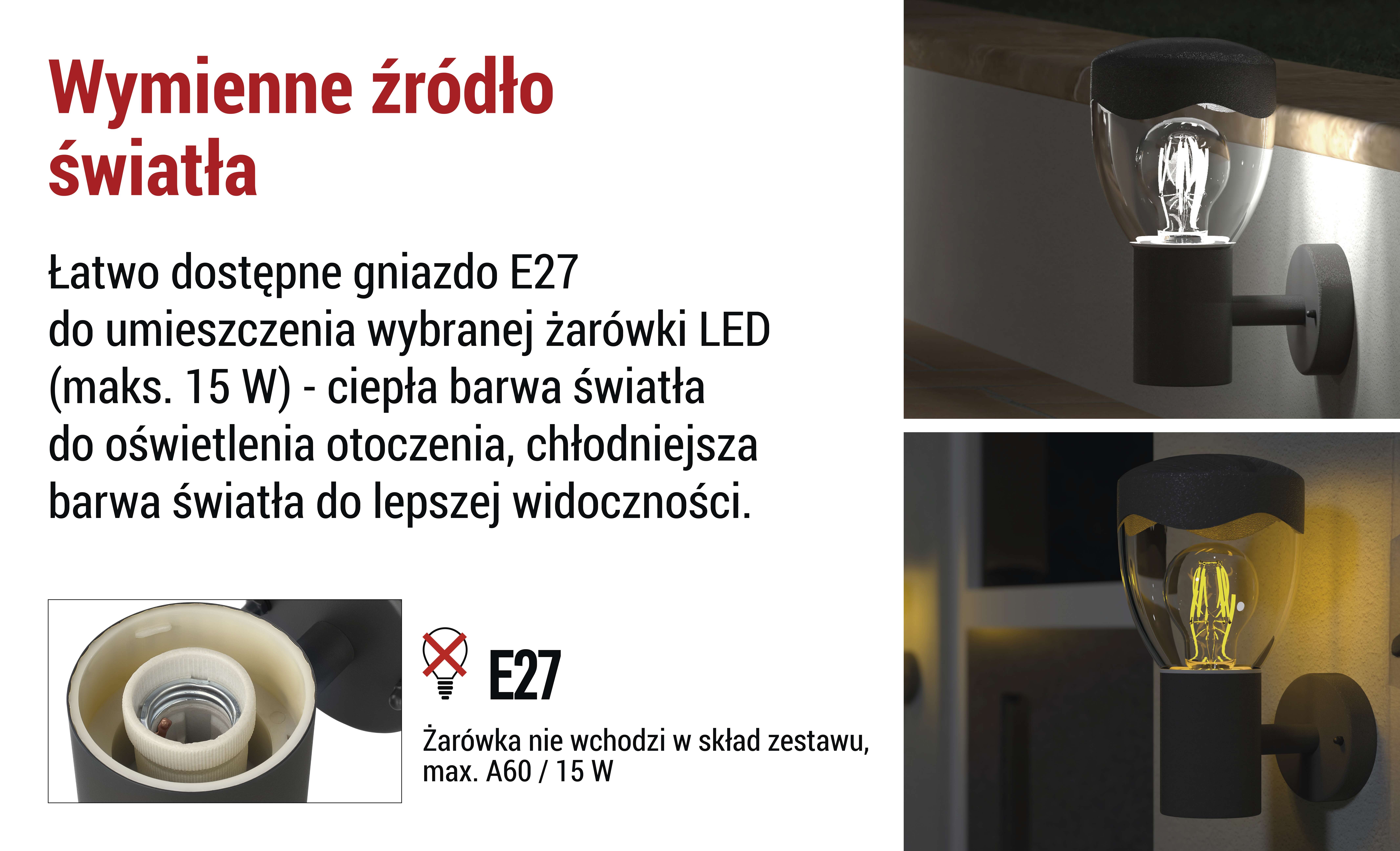 ✔ Możliwość wyboru żarówki o ciepłym lub chłodnym białym świetle