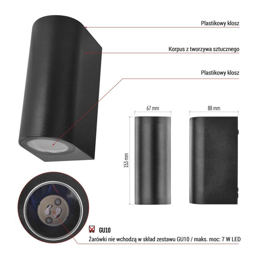 Lampa naścienna Garden OCULUS, 15cm, na żarówkę 2x GU10, IP44, 2× 7W