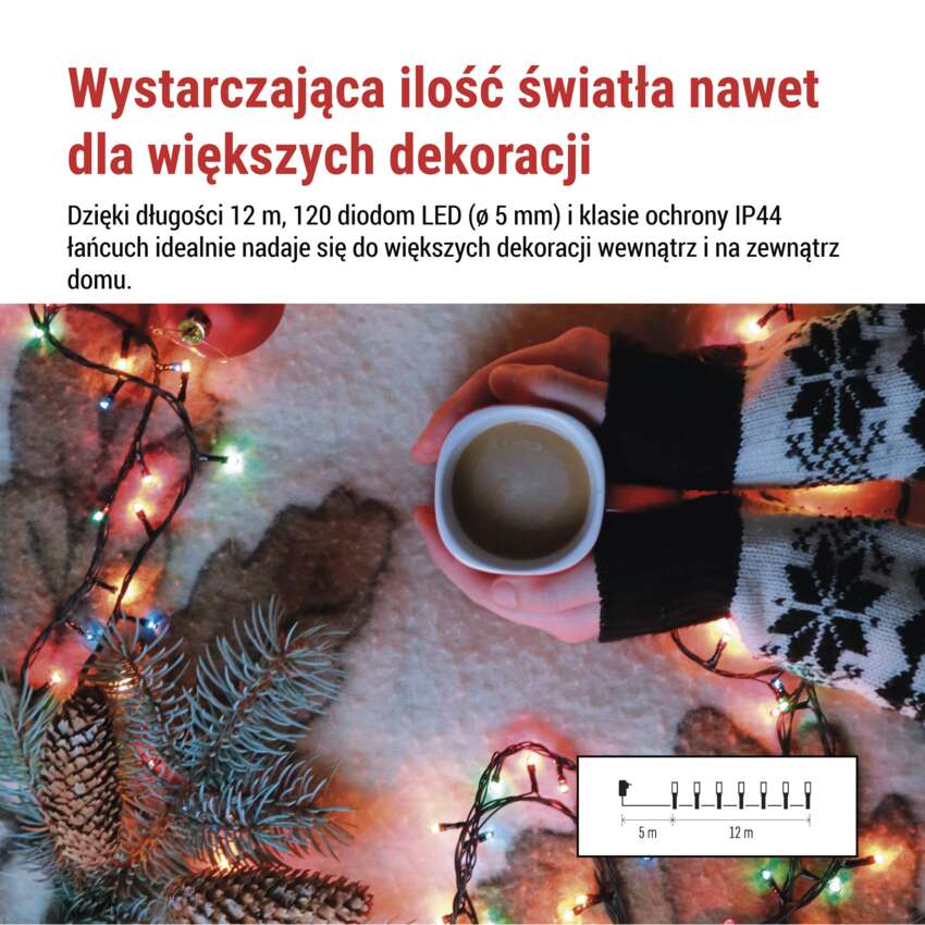 Lampki choinkowe Classic 120 LED 12m multikolor, ziel. przew., IP44, 8 programów, timer
