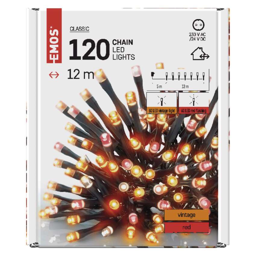 Lampki choinkowe Classic 120 LED świetliki 12m vintage + czerwone miga, IP44