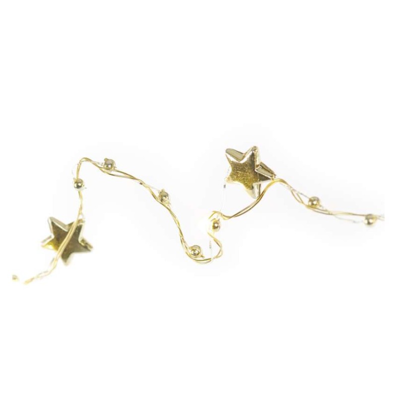Lampki choinkowe gwiazdki 20 LED ciepła biel, złoty przewód, IP20, timer