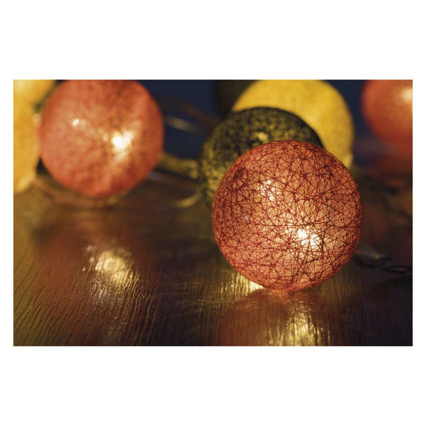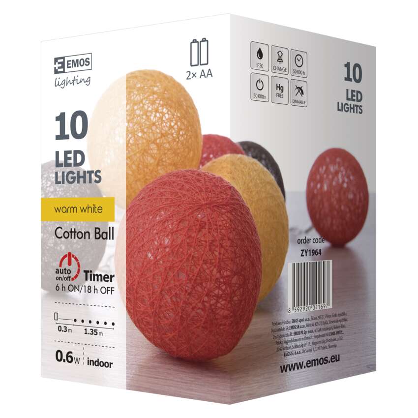 Łańcuch 10 LED 1,35m baweł. kule, wiosna, 2x AA, WW, timer