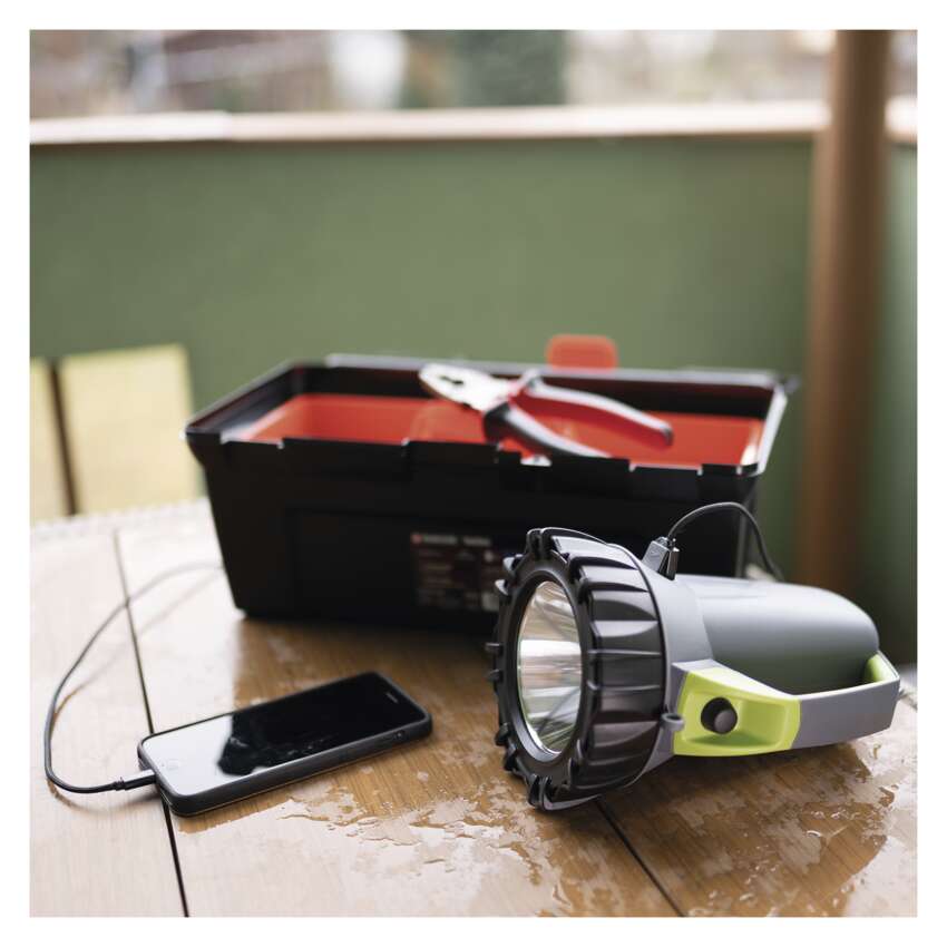 Pojemny akumulator Latarki LED P2312 może być również wykorzystywany jako powerbank. A to naprawdę przydaje się w podróży. Po podłączeniu kabla USB do wyjścia USB, możliwe jest ładowanie baterii dowolnego urządzenia przenośnego np. telefonu