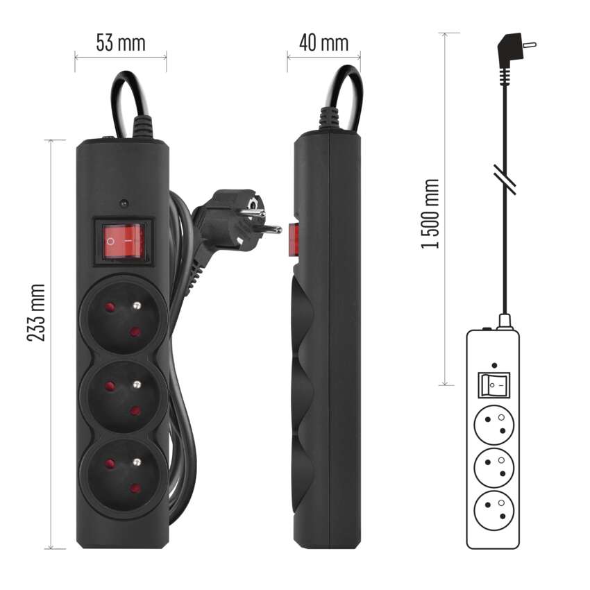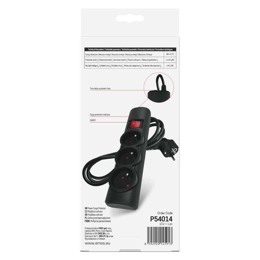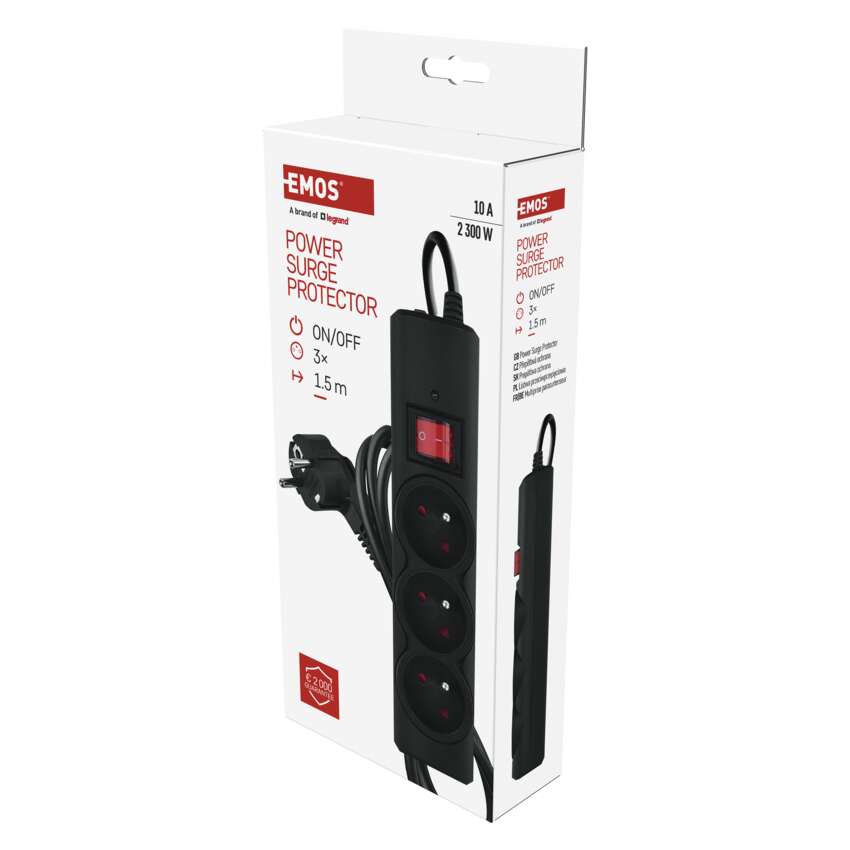 Listwa przeciwprzepięciowa EMOS, 3 gniazda, 1,5 m, czarna