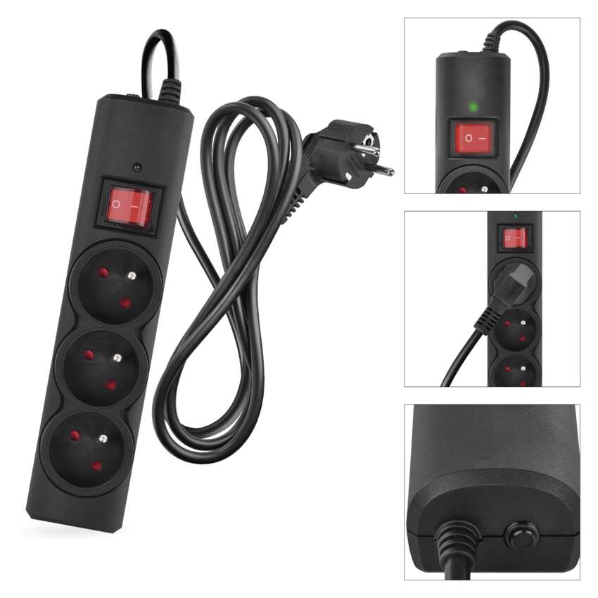 Wysokiej jakości ochrona przeciwprzepięciowa z 3 gniazdami, przewodem PVC o długości 1,5 m z żyłą 1,0 mm² i praktycznym wyłącznikiem. Chroni podłączone urządzenia przed przepięciami i skokami napięcia. Maksymalne obciążenie 2300 W (10 A) umożliwia bezpieczne korzystanie z wielu urządzeń jednocześnie w pomieszczeniach wewnętrznych. Wymienny bezpiecznik - łatwe przywracanie zasilania po przeciążeniu.