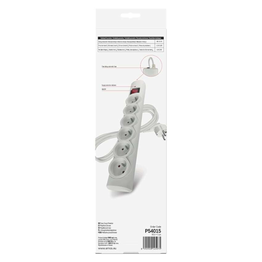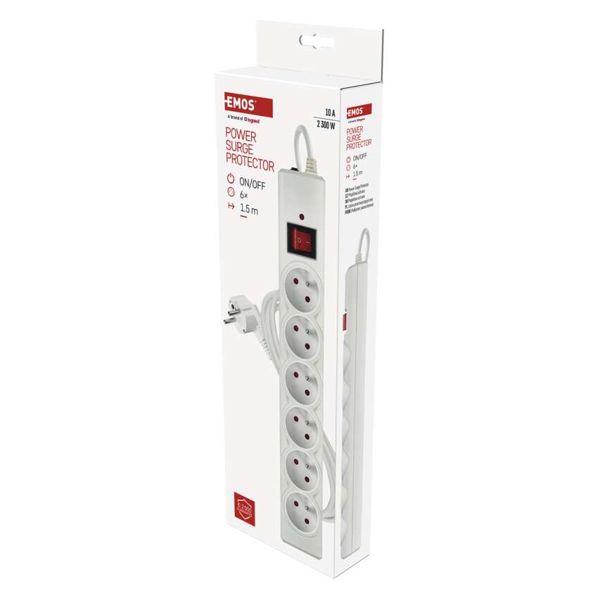 Listwa przeciwprzepięciowa EMOS, 6 gniazd, 1,5 m, biała