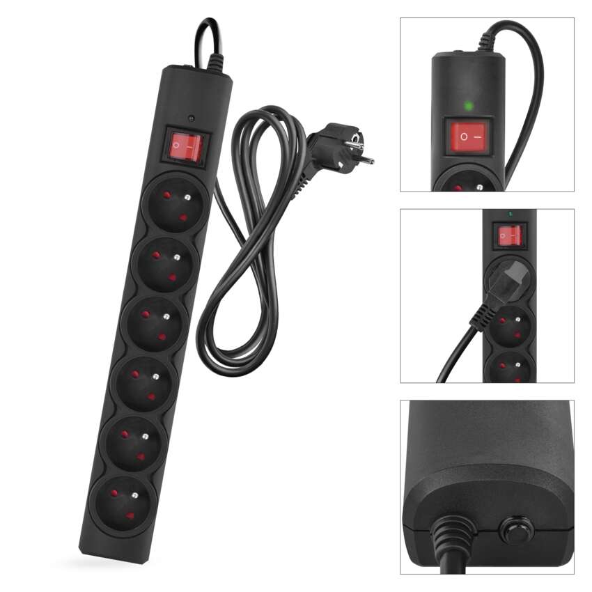 Listwa przeciwprzepięciowa EMOS, 6 gniazd, 1,5 m, czarna