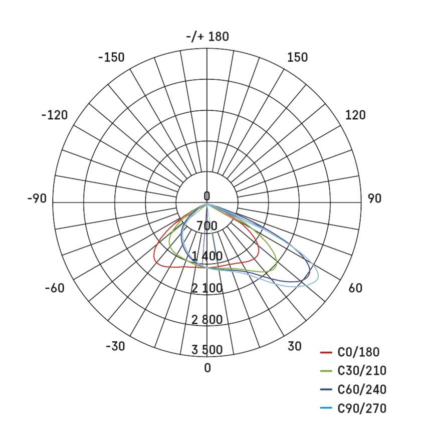 Dzięki zastosowanej technologii LED i kształtowi klosza reflektor oświetla pomieszczenie pod kątem 55° × 125° dla wariantu ASYMMETRIC, pod kątem 26° × 60° dla wariantu BILLBOARD i pod kątem 60° dla wariantu NARROW (wąski).