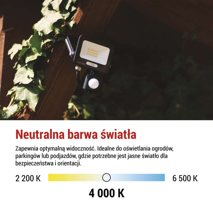 Odbłyśniki GLARO z czujnikiem PIR zapewniają automatyczne i ekonomiczne oświetlenie. Dzięki czujnikowi światło włącza się tylko po wykryciu ruchu - na przykład po powrocie do domu, ruchu na podjeździe lub w ogrodzie. Takie rozwiązanie zmniejsza zużycie energii, zwiększa bezpieczeństwo i zapewnia wygodę - nie trzeba szukać włącznika ani ryzykować ciemności. Dla maksymalnej wygody można ustawić, przy jakim poziomie oświetlenia otoczenia reflektor się aktywuje, jak długo pozostaje włączony po wykryciu ruchu i jaka jest jego czułość. Dzięki tym opcjom światło zachowuje się dokładnie tak, jak tego potrzebujesz, oszczędzając energię i poprawiając bezpieczeństwo, niezależnie od tego, czy oświetlasz drzwi, podjazdy, ogrody czy garaże.