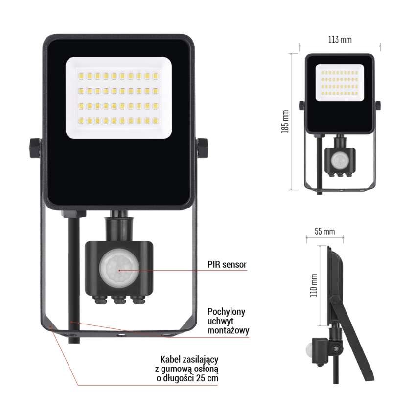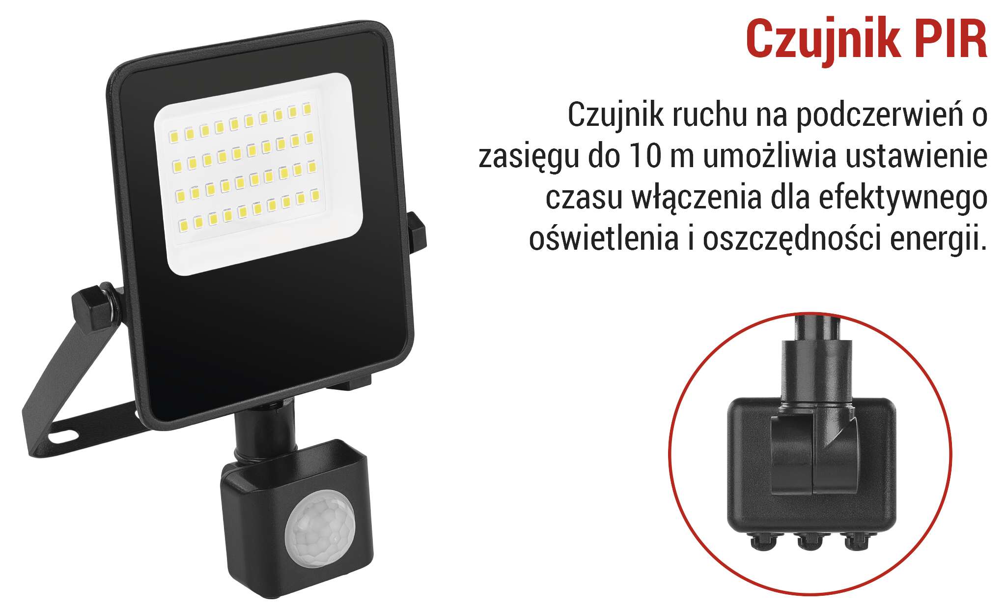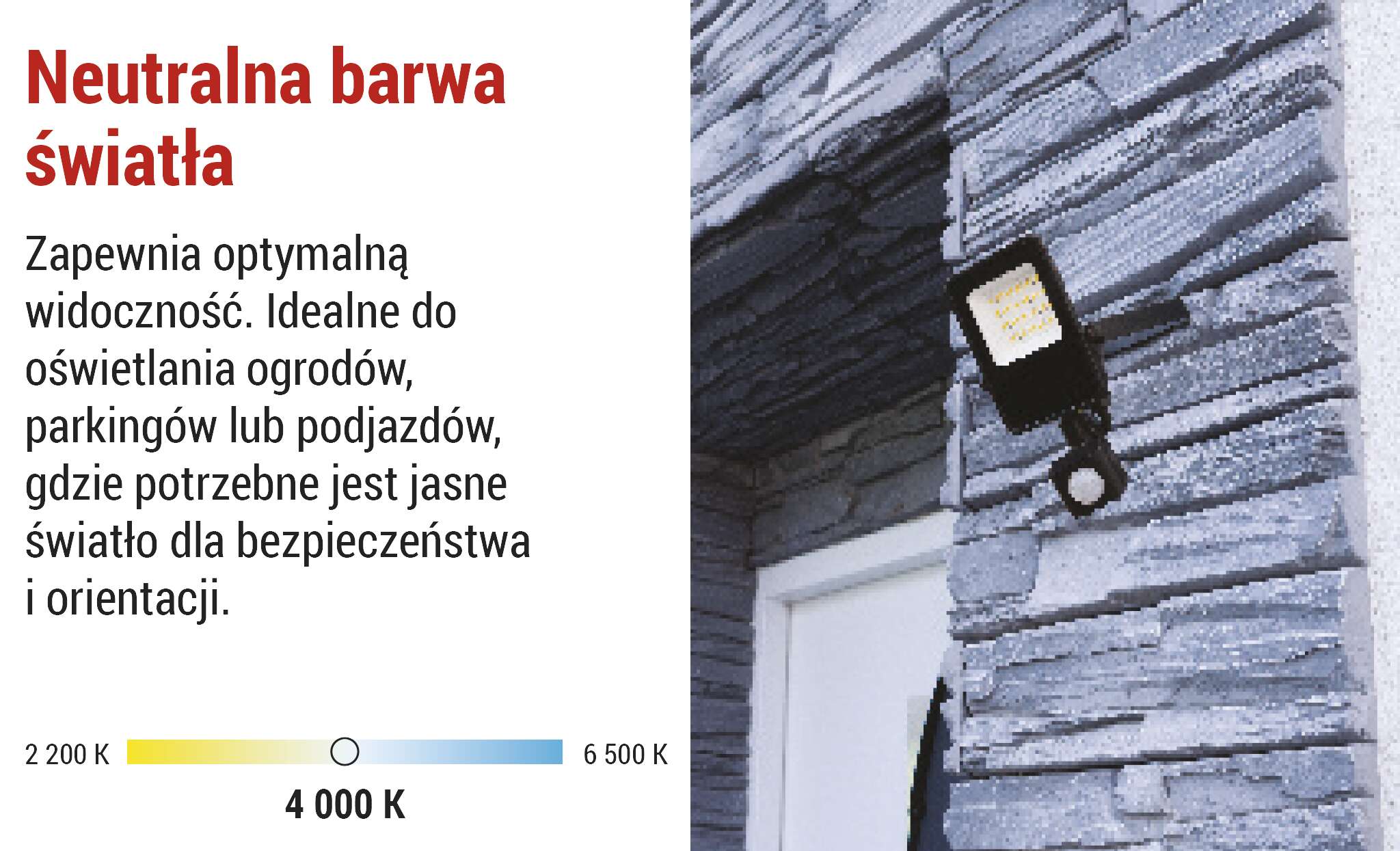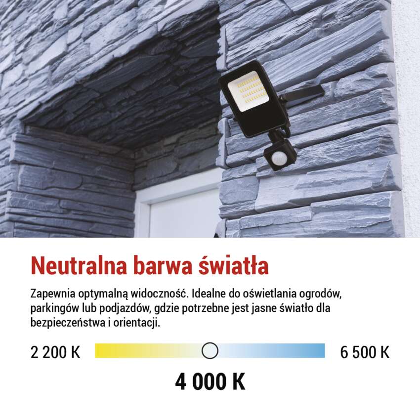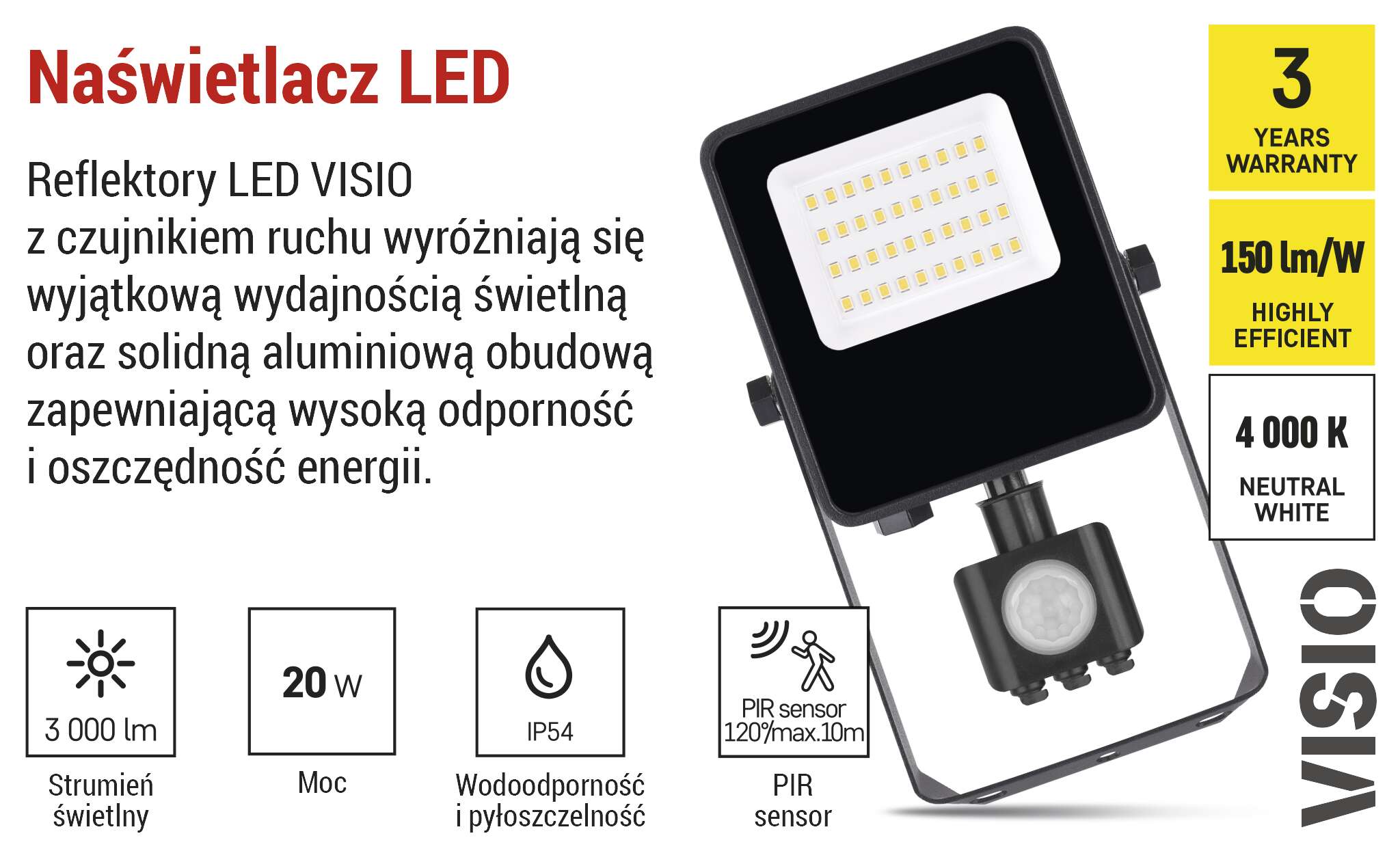 Naświetlacz LED VISIO z czujnikiem PIR 20W, neutralna biel