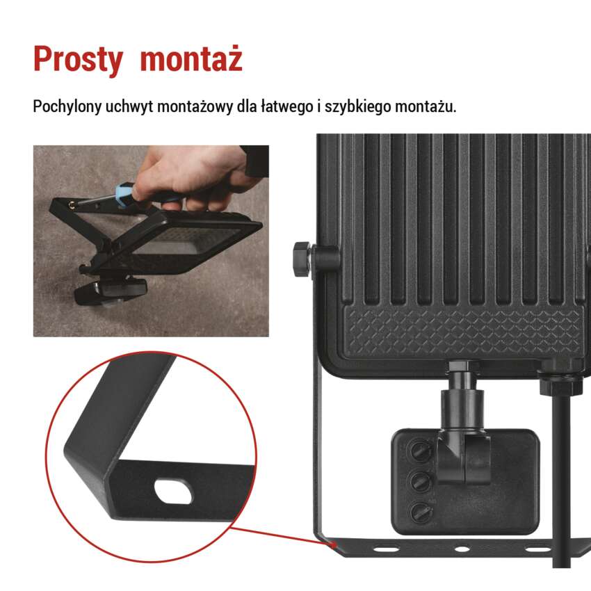 Ten naświetlacz jest przeznaczony do trudnych warunków zewnętrznych. Stopień ochrony IP54 oznacza, że bez problemu wytrzyma deszcz, kurz i zachlapanie wodą.
