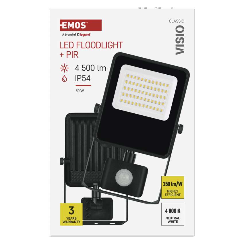 Naświetlacz LED VISIO z czujnikiem PIR 30 W, neutralna biel